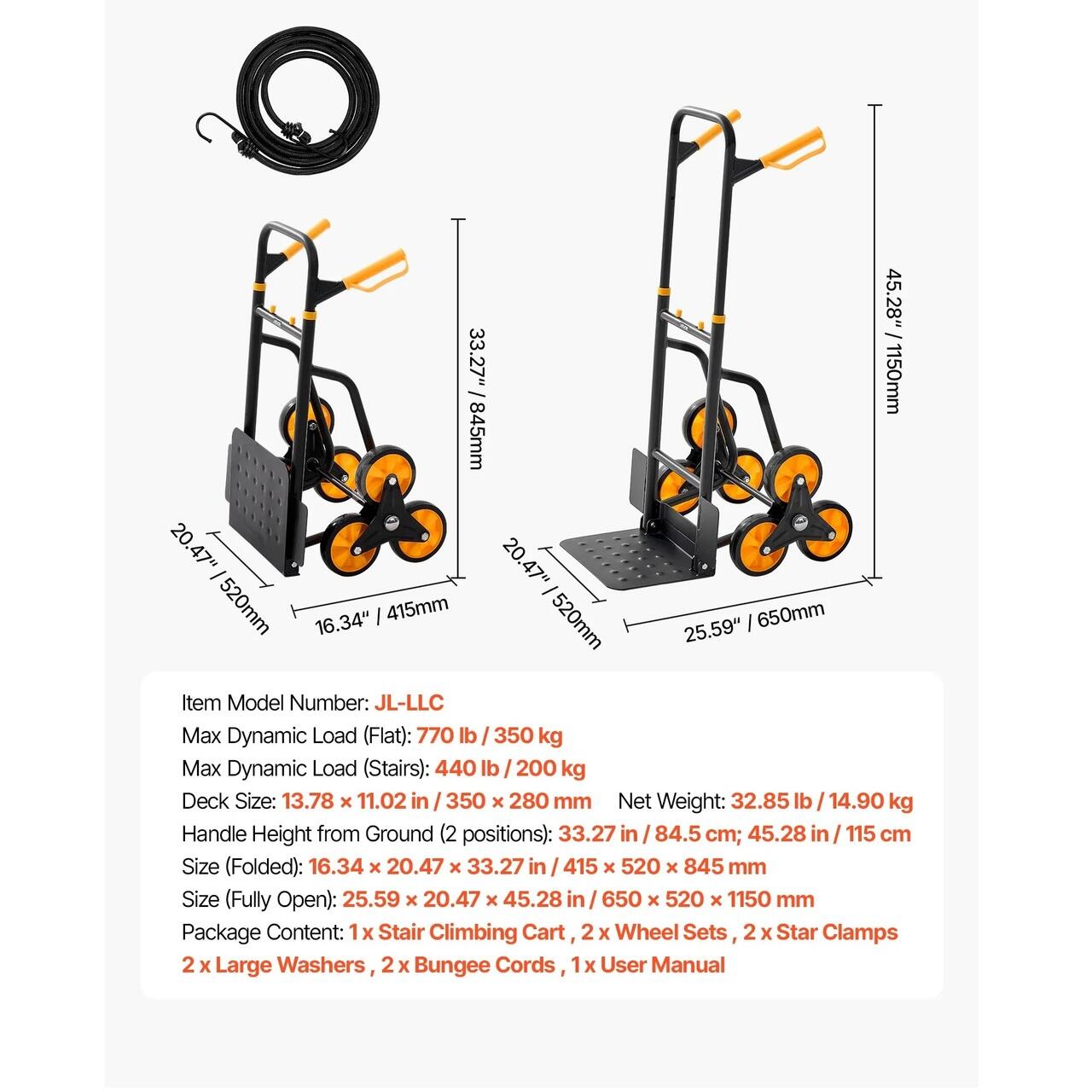 Transport stabil in mod dual: Acest carucior pentru urcatul scarilor ofera o actiune constanta a scarilor si o capacitate mare de transport pe teren plat. Puteti muta obiecte mari cu un control sigur si reduce riscul de rasturnare.