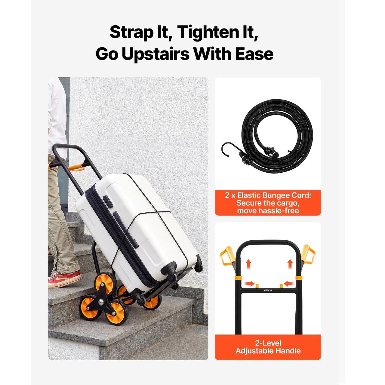Versatil pentru multe situatii: Acest carucior manual pentru urcatul scarilor transporta cu usurinta bunuri de uz casnic, colete si rechizite de birou. Folositi dimensiunea complet deschisa pentru a se potrivi diferitelor forme de obiecte si pentru a va ajuta sa indepliniti sarcinile zilnice.