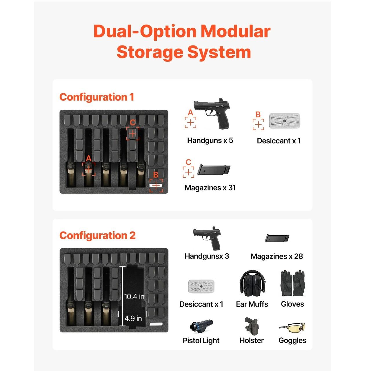 Protectie pentru arme de foc: Husa rigida pentru pistol poate tine pana la 5 pistoale si 31 de incarcatoare, fiind potrivita pentru majoritatea pistoalelor sub 10,03 in / 254,76 mm, inclusiv modelele populare Glock (nu este potrivita pentru revolvere). Ideala pentru poligon, calatorii sau depozitare sigura acasa.
