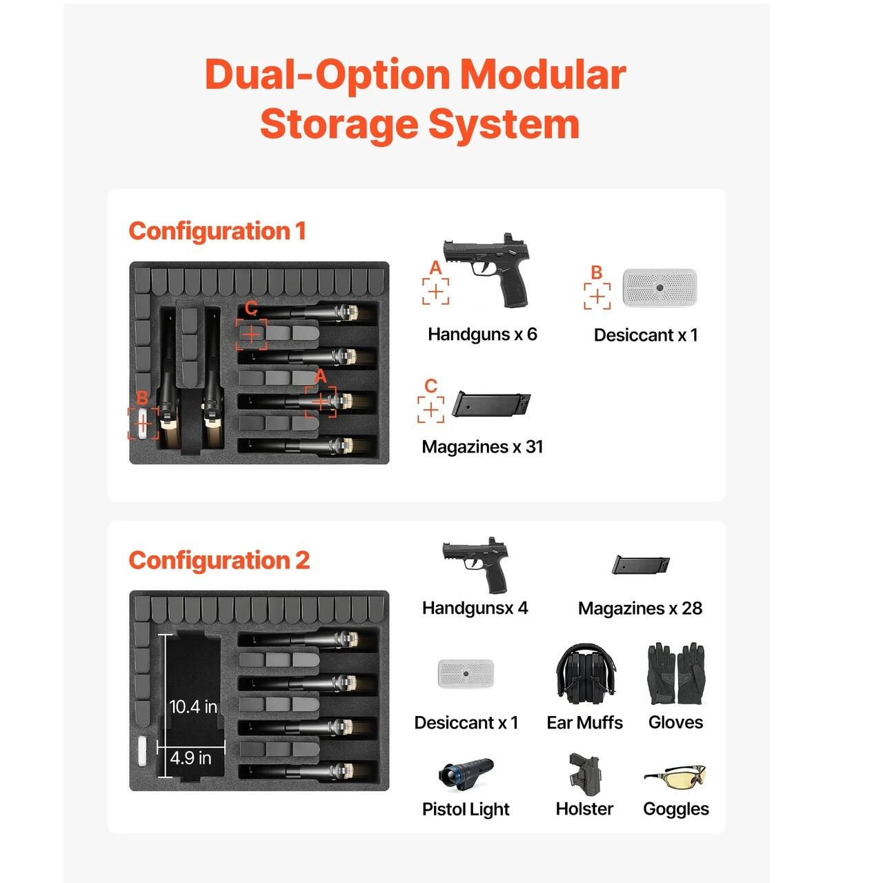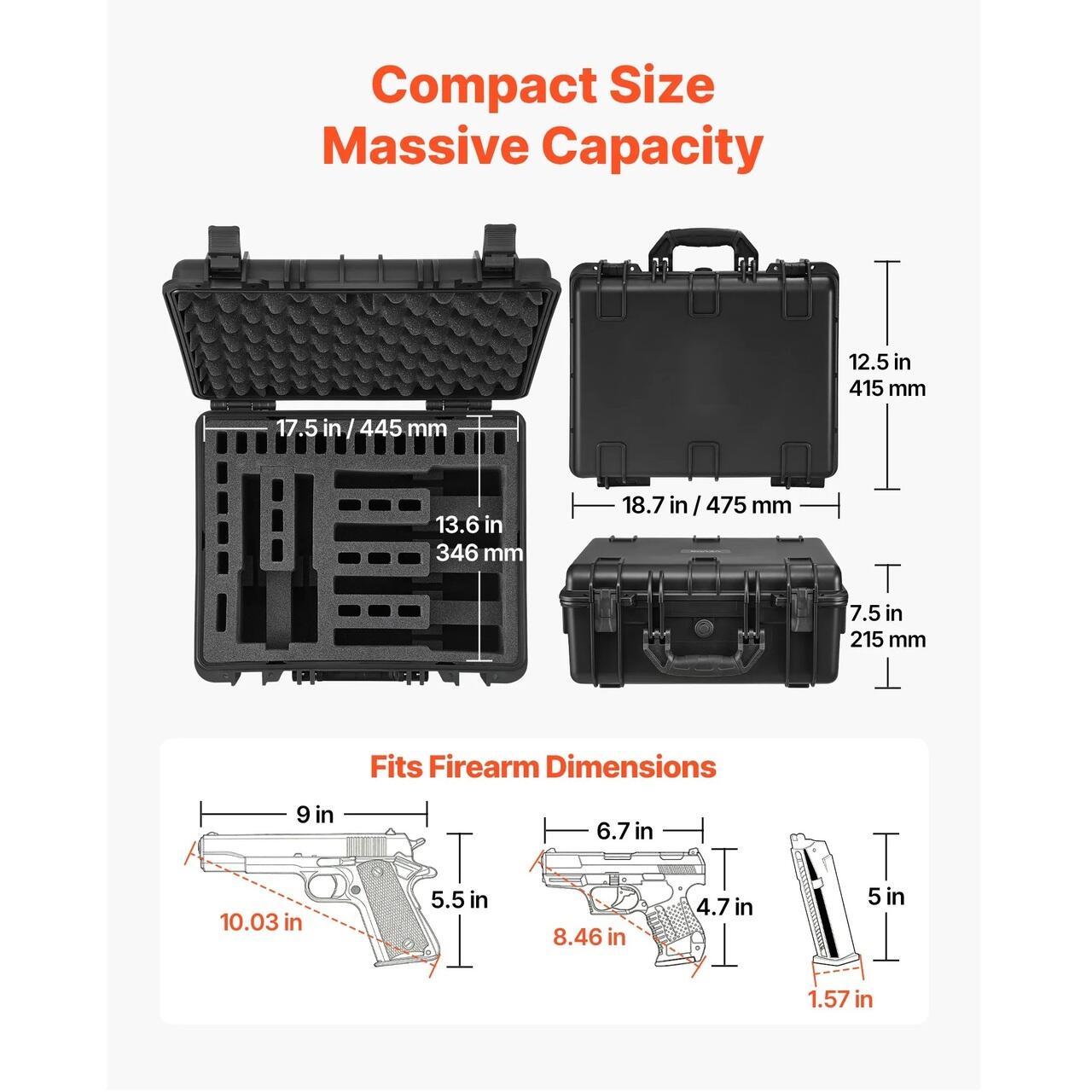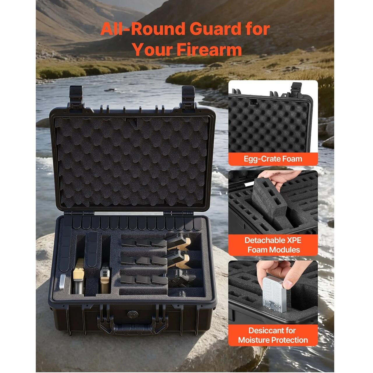 Protectie pentru arme de foc: Husa rigida pentru pistol poate tine pana la 6 pistoale si 31 de incarcatoare, fiind potrivita pentru majoritatea pistoalelor sub 10,03 in / 254,76 mm, inclusiv modelele populare Glock (nu este potrivita pentru revolvere). Ideala pentru poligon, calatorii sau depozitare sigura acasa.