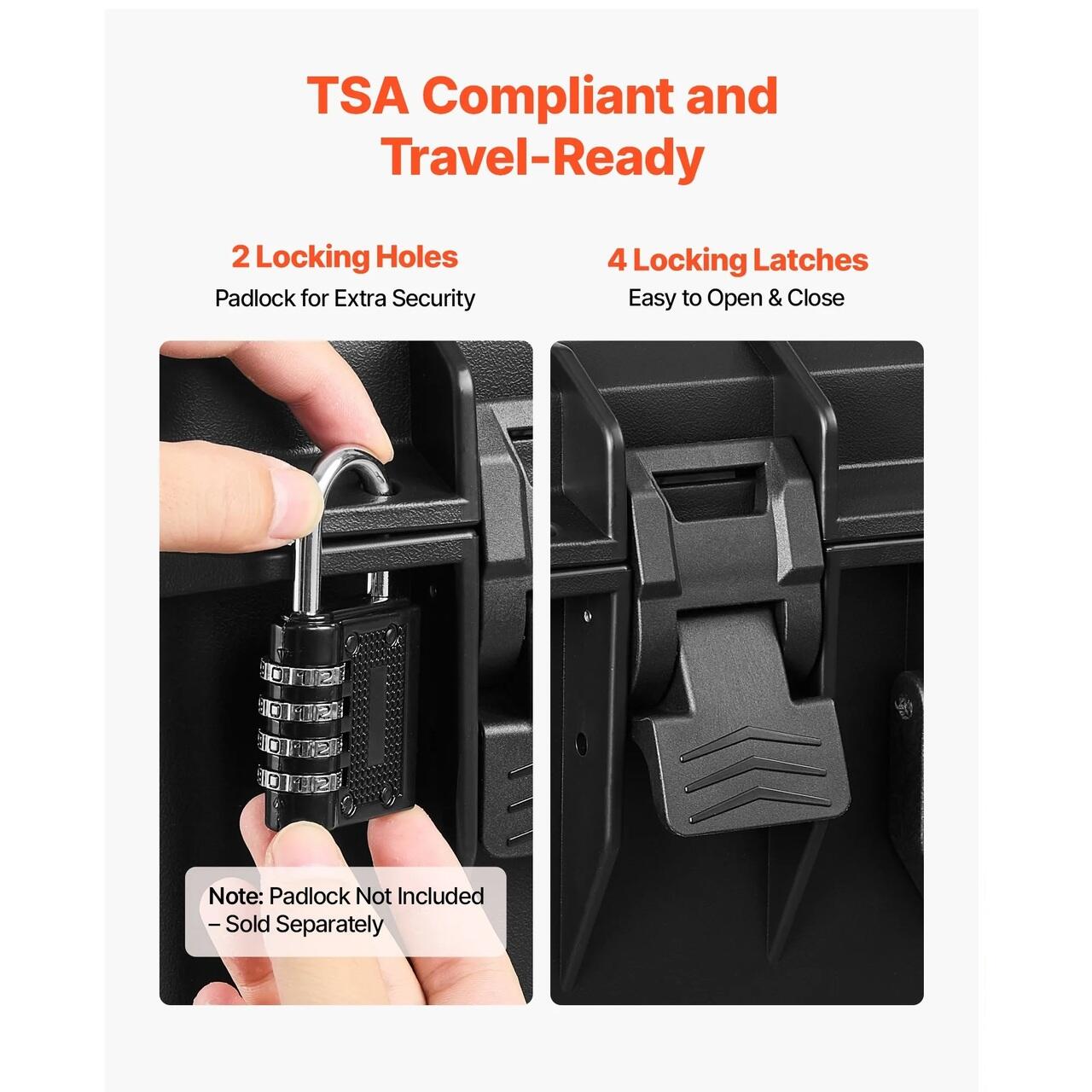 Conform cu TSA: Husa pentru pusca este testata TSA pentru transportul in avion, tren si transport public. Doua zavoare asigura o inchidere sigura, iar doua orificii de blocare permit adaugarea de lacate pentru o siguranta sporita a armei de foc in timpul transportului (lacatele nu sunt incluse)