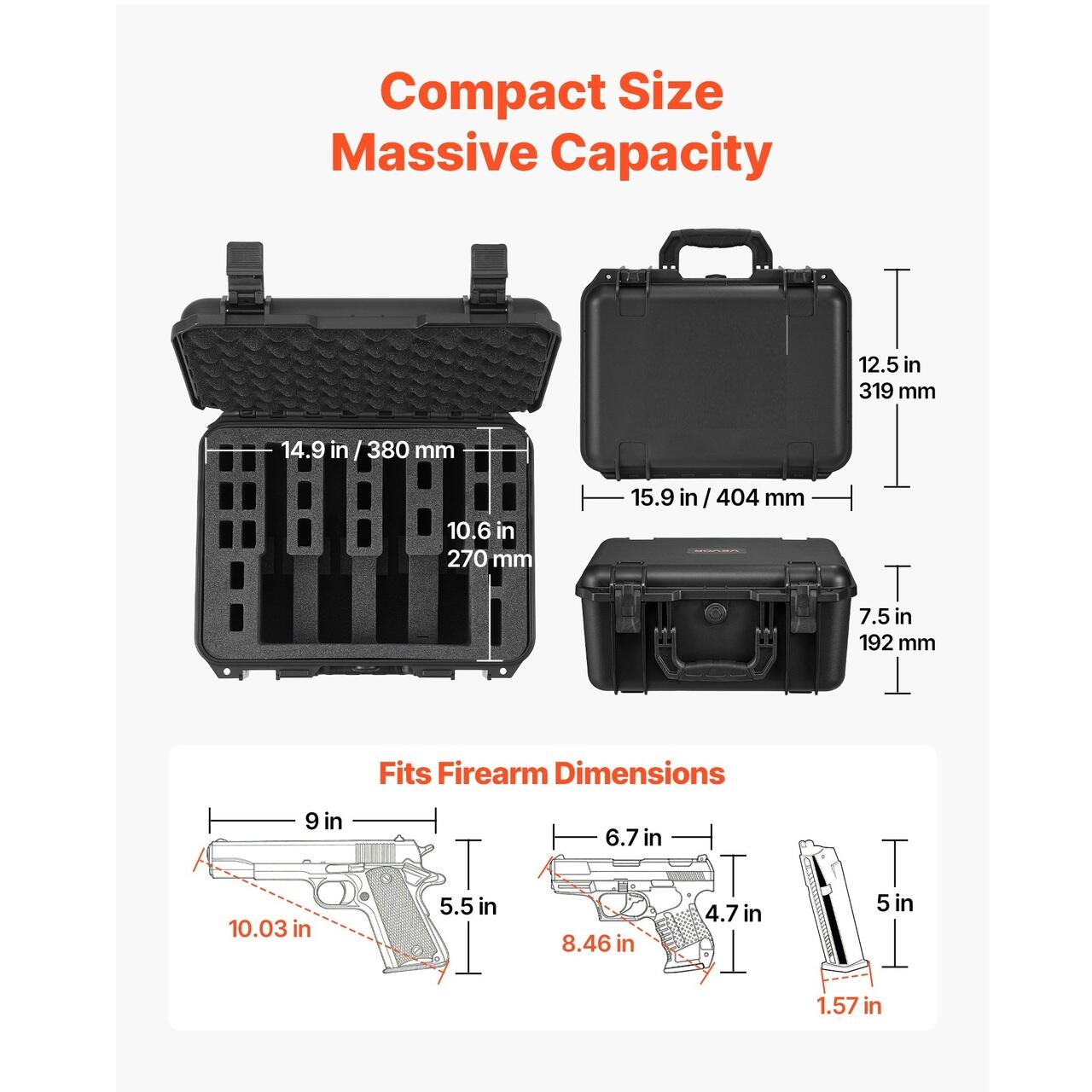 Protectie pentru arme de foc: Husa rigida pentru pistol poate tine pana la 4 pistoale si 23 de incarcatoare, fiind potrivita pentru majoritatea pistoalelor sub 254,76 mm, inclusiv modelele populare Glock (nu este potrivita pentru revolvere). Ideala pentru poligon, calatorii sau depozitare sigura acasa.