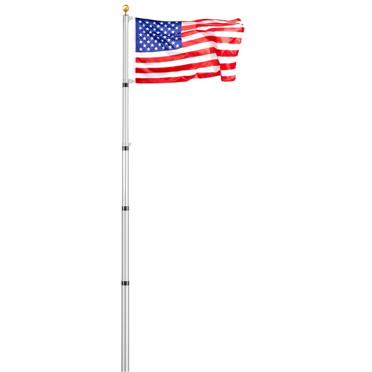 Catarg telescopic pentru steag, Inaltime 6 m, Aluminiu, Argintiu, 5 sectiuni