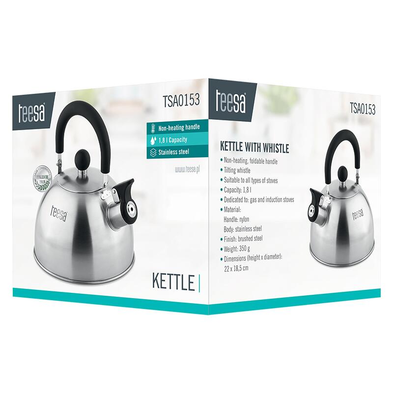 Ceainic cu fluier rabatabil, Teesa Inox, capacitate 1.8 l, Inox, fund ingrosat, Diametru 18.5 cm