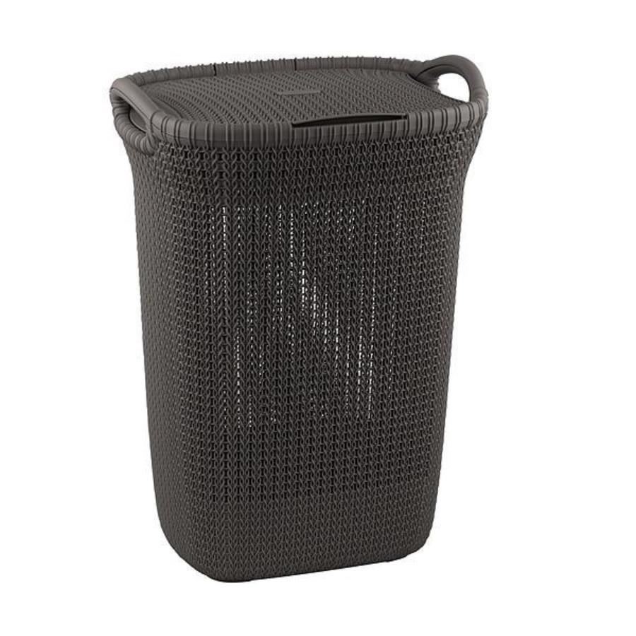 Coș de rufe, cu capac, din plastic, Curver Knit 3675, antracit, capacitate 57L