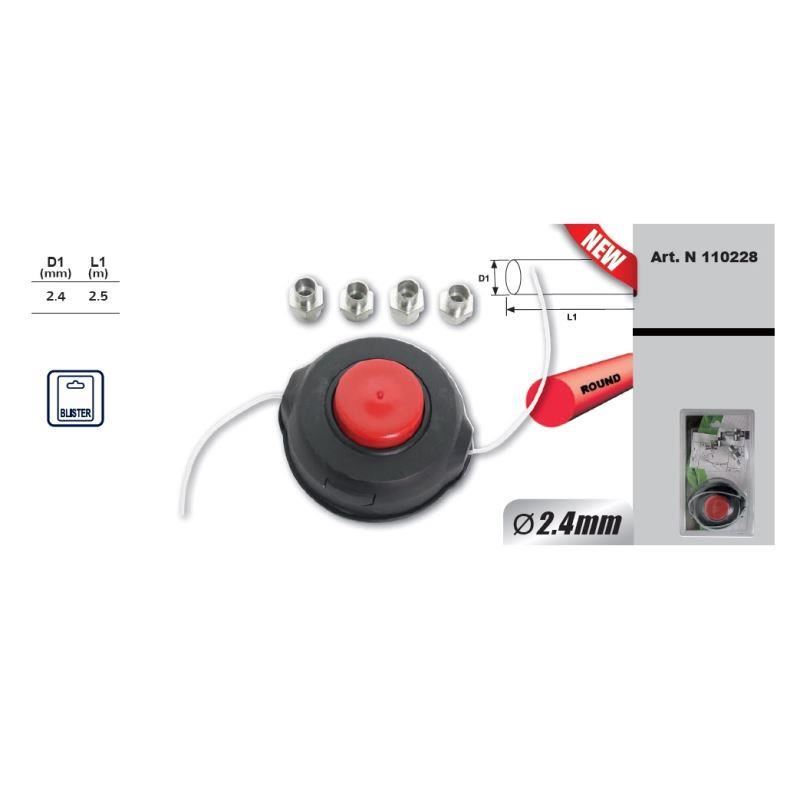 Tambur fir nylon 2.4mm si 4 adaptori pe filet pentru trimere si motocoase, Raider