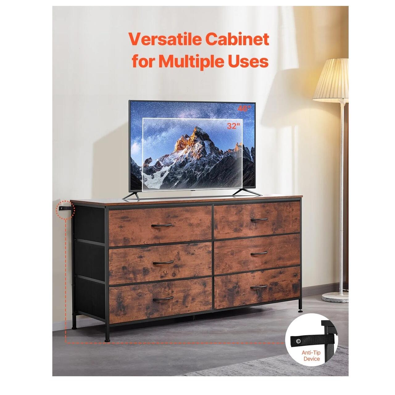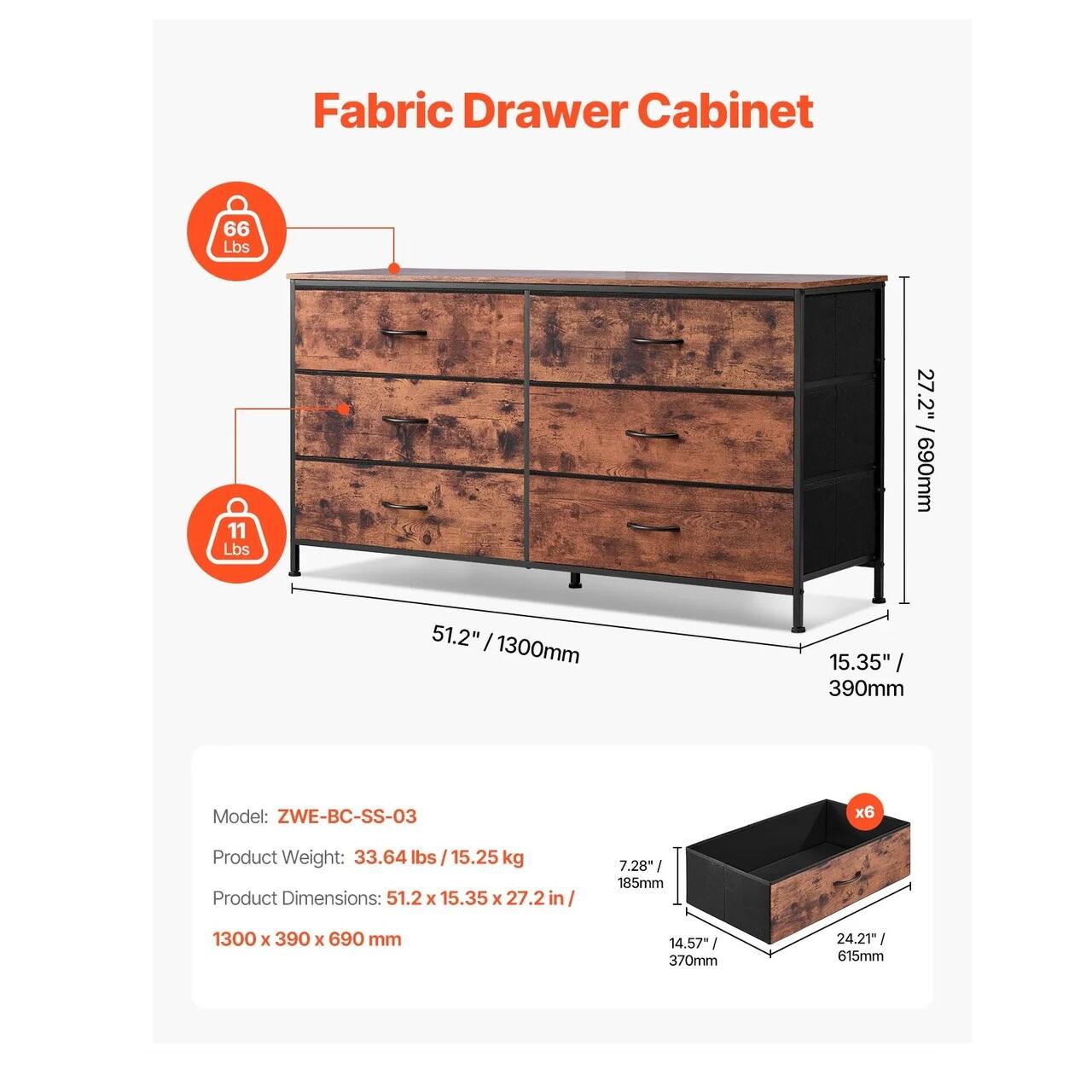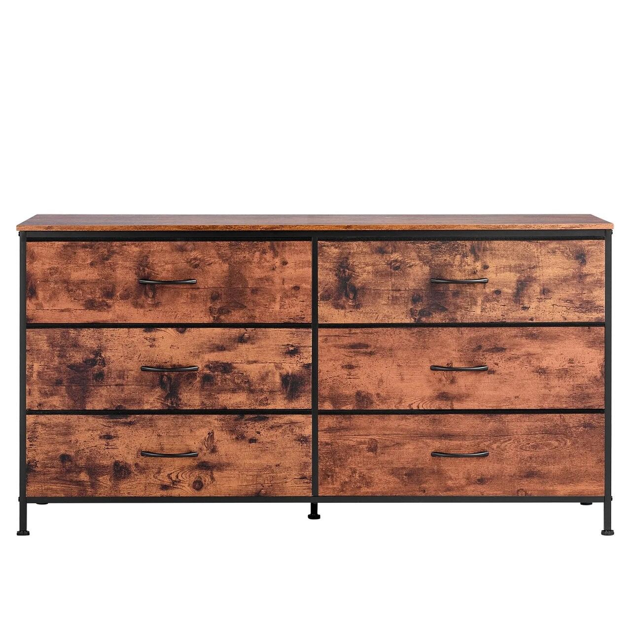 Comoda cu 6 sertare, Maro, 1300 x 390 x 690 mm, MDF/Otel