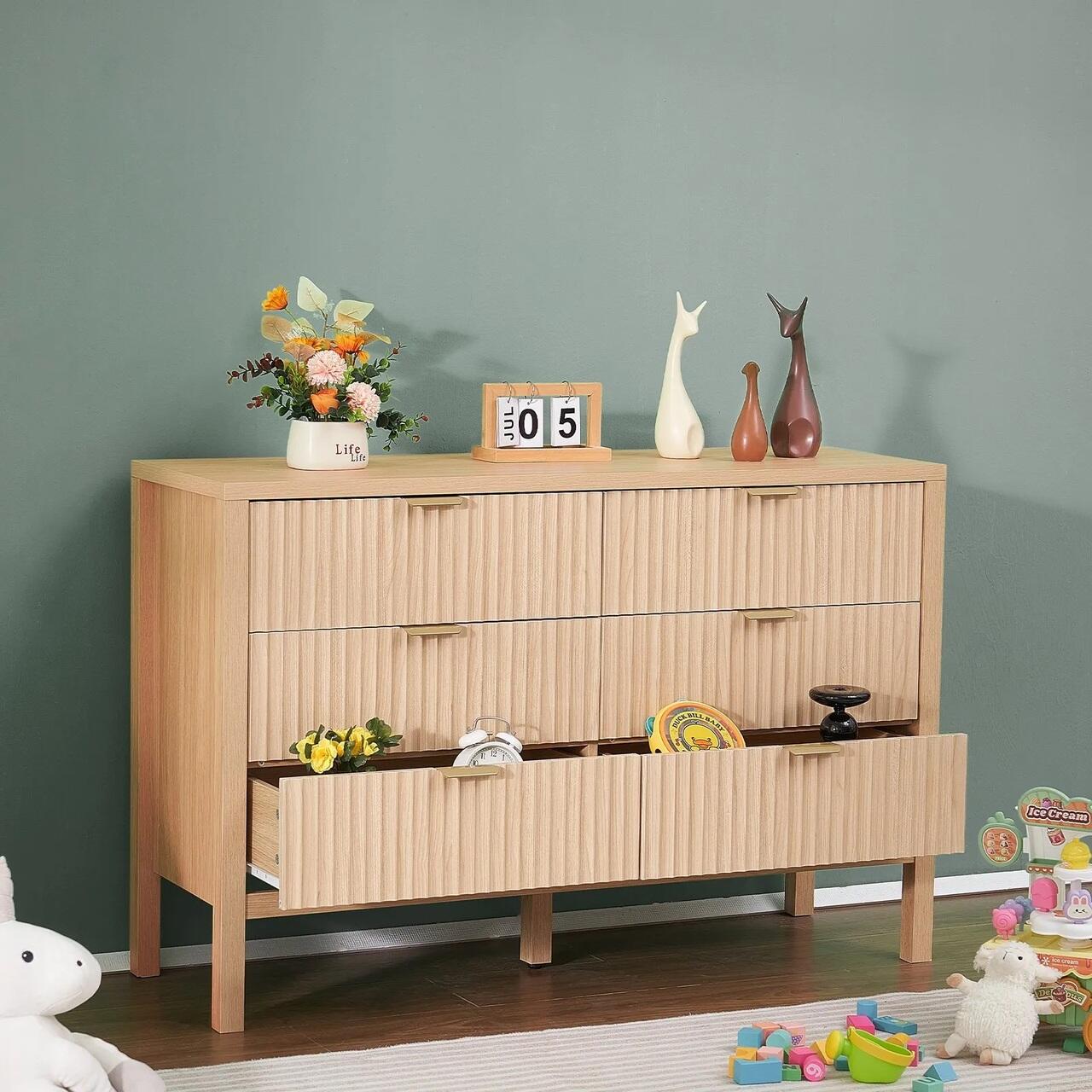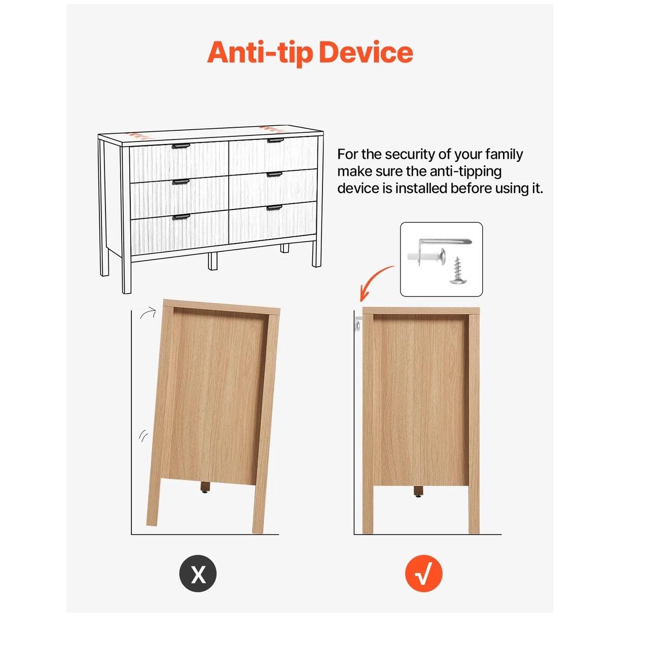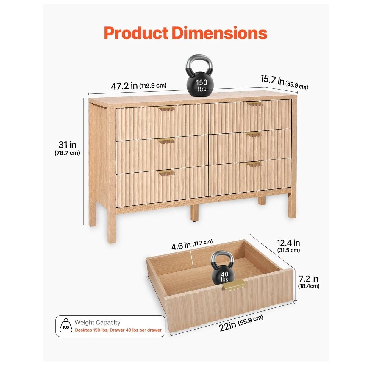Spatiu de depozitare multifunctional: Comoda cu sase sertare din lemn ofera spatiu de depozitare privat pentru haine, prosoape, palarii si multe altele. Suprafata spatioasa este ideala pentru chei, rame foto, oglinzi si decoratiuni personalizate, fiind usor de accesat. Fiecare sertar este echipat cu sine metalice, permitand o glisare lina si usoara pentru a recupera sau depozita rapid obiecte.