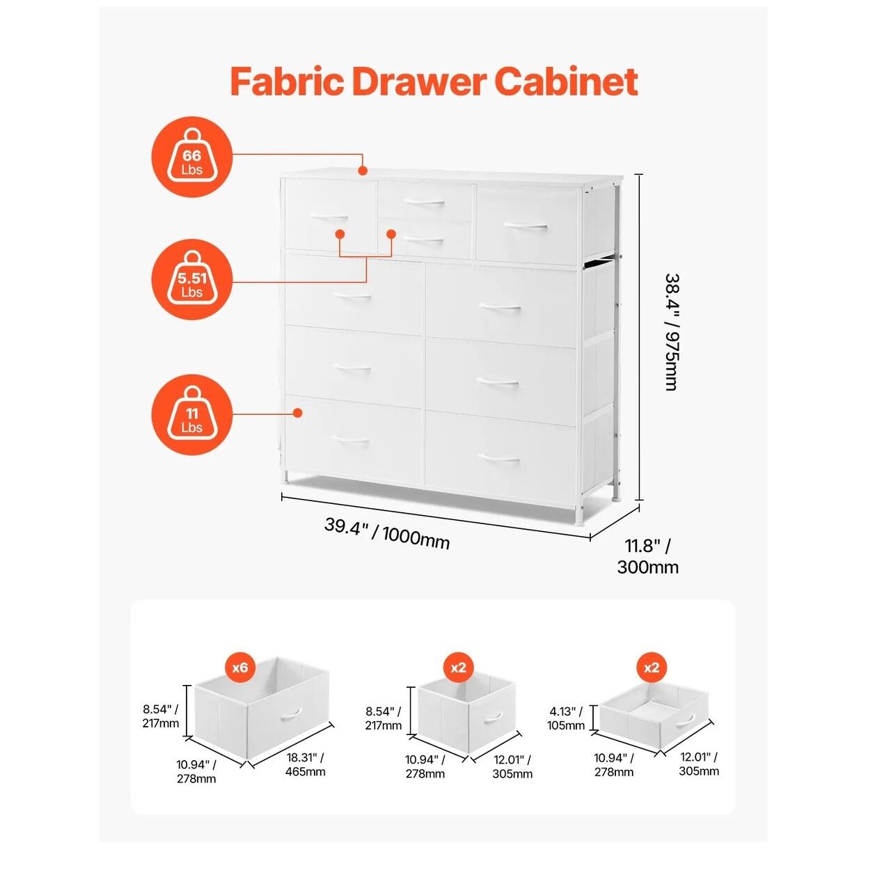 Comoda cu 10 sertare, dispozitiv anti-rasturnare, Alb, 1000 x 300 x 975 mm