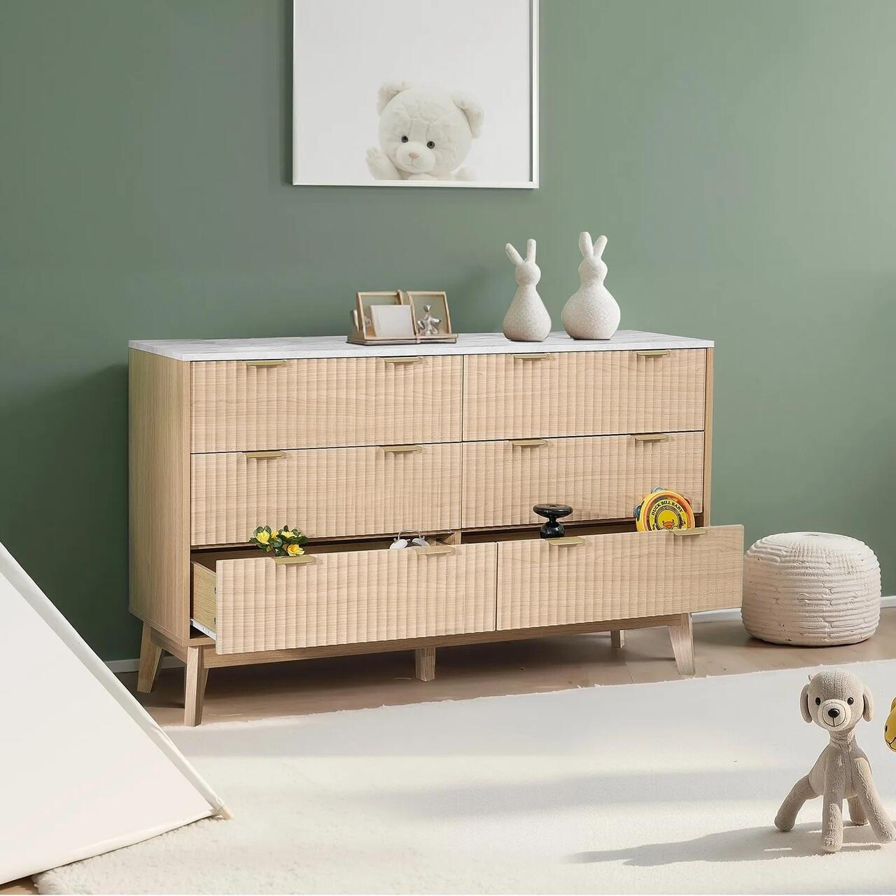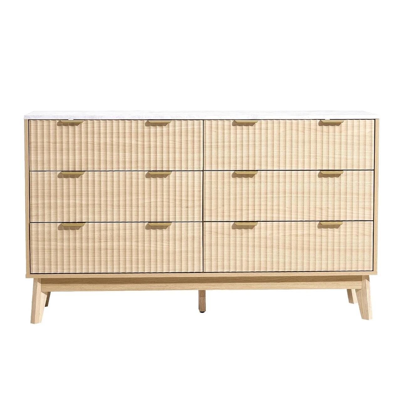 Comoda cu 6 sertare canelate, Minimalist style, Dispozitiv anti-rasturnare, 40 x 137,2 x 81,3 cm