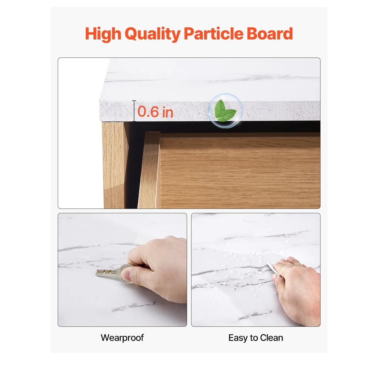 Structura stabila: Comoda noastra exceleaza prin capacitatea de greutate si stabilitate. Fabricata din PAL gros, de inalta calitate, blatul durabil rezista uzurii zilnice, suportand pana la 68 kg. Fiecare sertar poate sustine pana la 18 kg, oferind o capacitate portanta excelenta.
