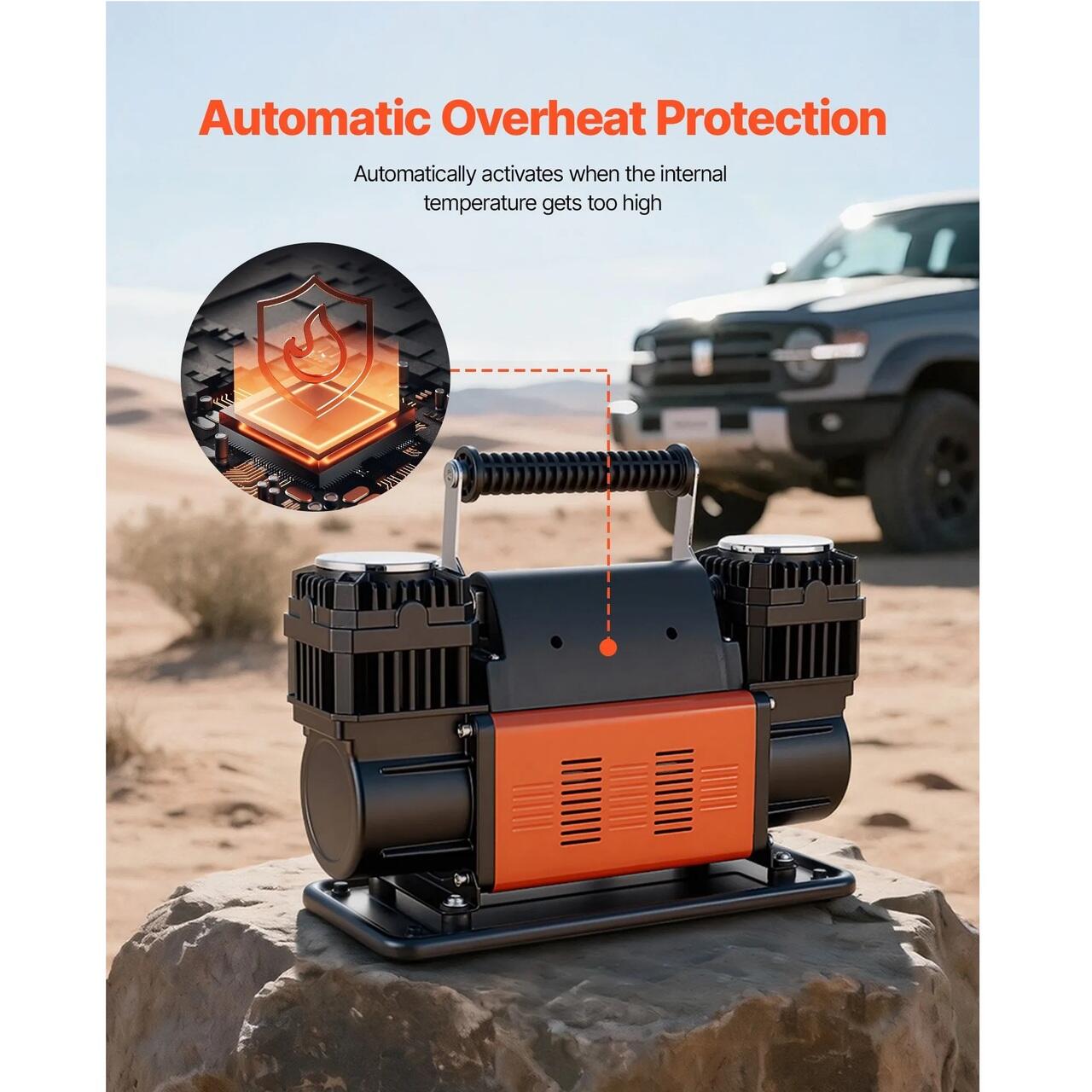Protectie de siguranta fiabila: Construita cu un sistem de protectie la supraincalzire, aceasta pompa de aer off-road de 150 PSI, rezistenta la uzura, previne deteriorarea motorului din cauza temperaturilor ridicate, asigurand o functionare sigura si performante de lunga durata.