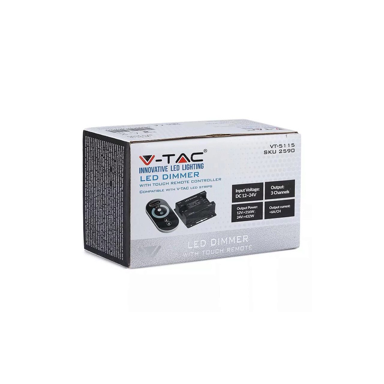 Tensiune de intrare: DC 12V / 24V Ieșire: 3 canale de culoare Curent de ieșire: mai mic de 6A / canal Putere de ieșire: DC 12V: mai micã de 216W, DC 24V: mai micã de 432W Compatibil cu lãmpile cu LED-uri V-TAC LED Strip