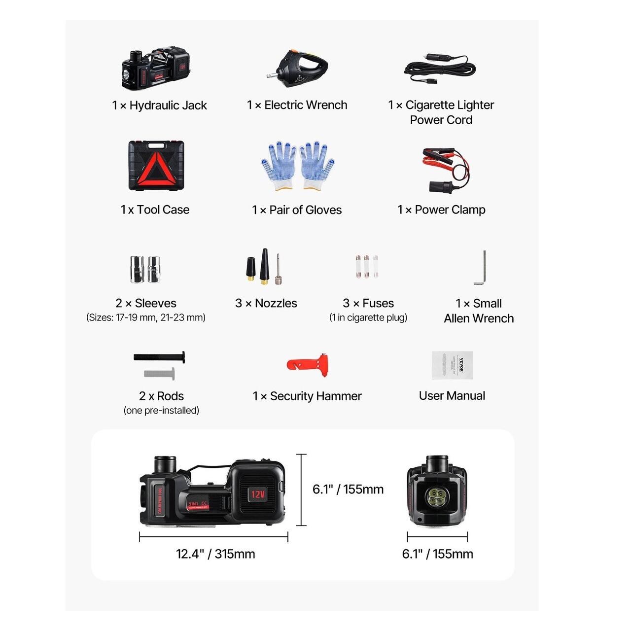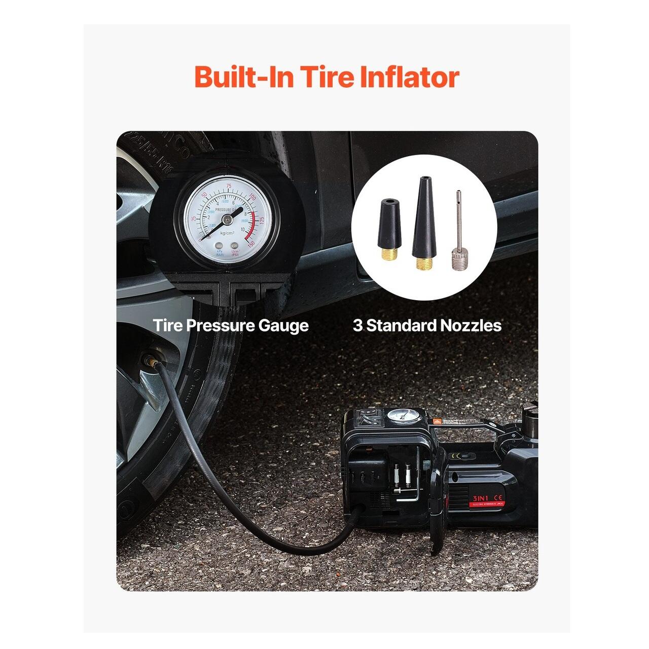 Combo de umflare si ridicare: cricul nostru electric combina functiile de umflare si ridicare, avand 3 duze standard pentru a umfla anvelopa in cateva minute. Cricul hidraulic mareste eficienta inlocuirii anvelopelor.
