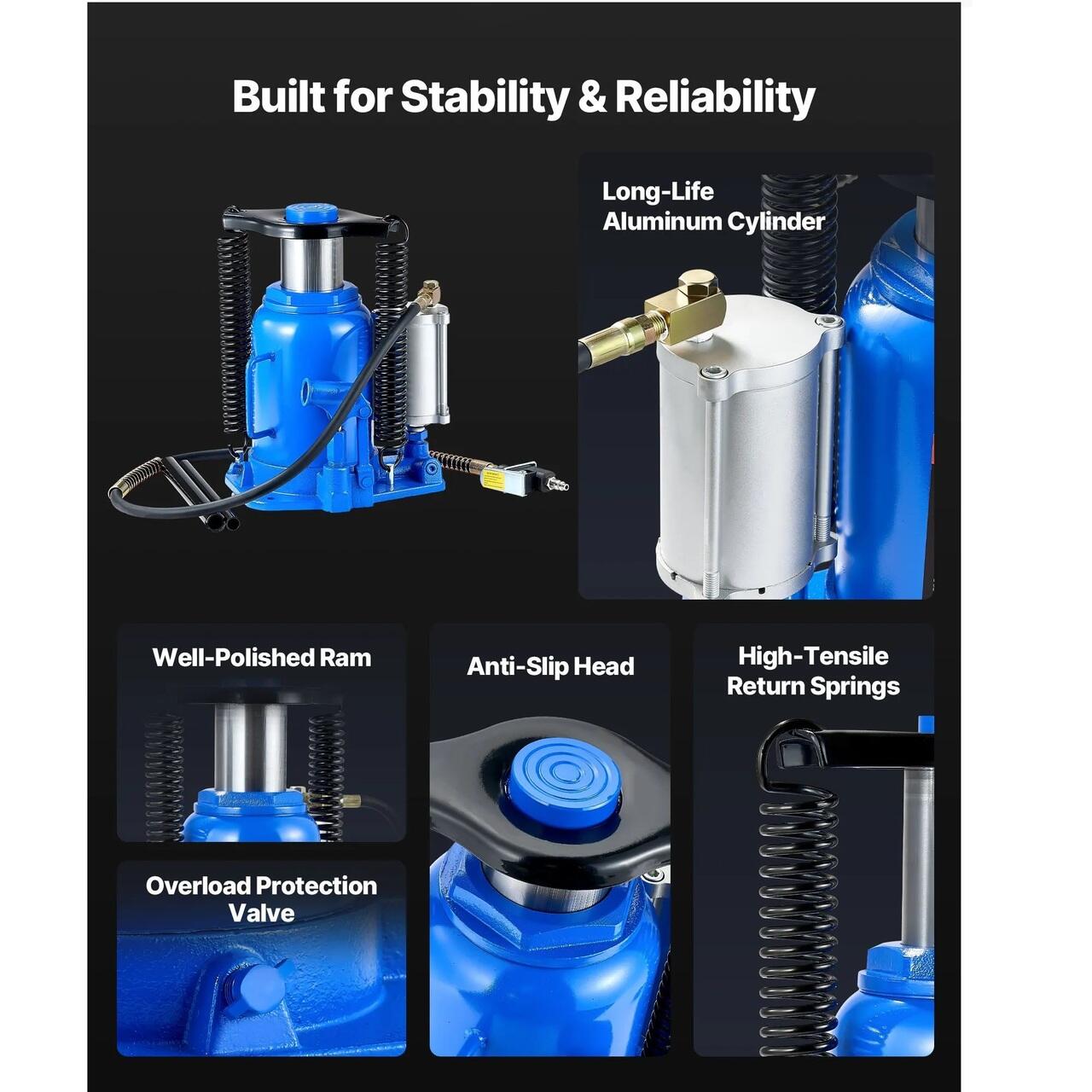 Ridicare de sarcini grele: Cu o capacitate de ridicare de pana la 32 de tone acest cric hidraulic pentru butelii manevreaza cu usurinta camioane, rulote, camionete si SUV-uri - excelent pentru schimbarea anvelopelor si inspectii rapide.