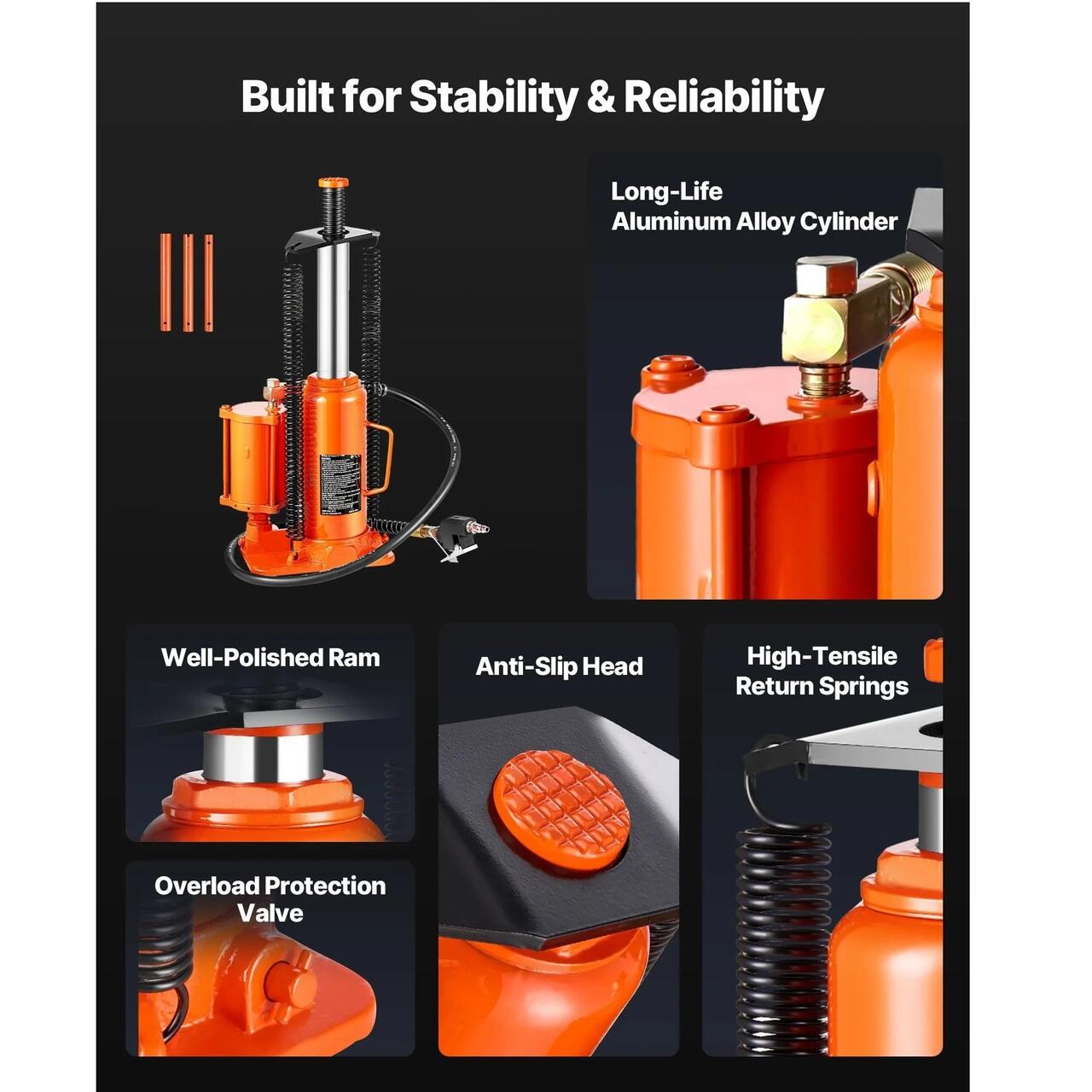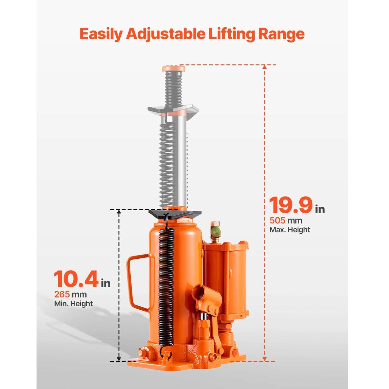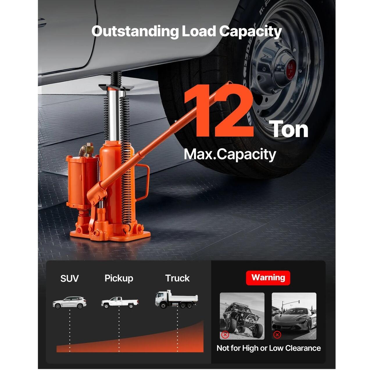 Ridicare de sarcini grele: Cu o capacitate de ridicare de pana la 12 tone, acest cric hidraulic tip sticla poate manipula cu usurinta SUV-uri, camioane si pickup-uri - excelent pentru schimbarea anvelopelor si inspectii rapide.