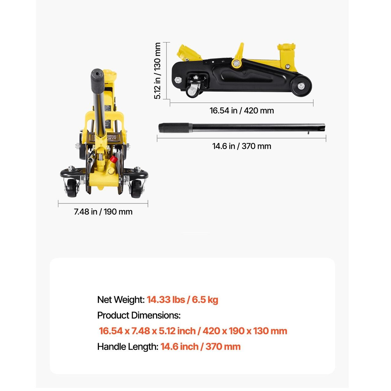 Sarcina maxima de 1,5 tone: Cricul nostru de podea sustine pana la 1,5 tone ideal pentru ridicarea masinilor sport si a sedanurilor. Este fiabil pentru intretinerea locuintei, schimbarea anvelopelor, verificarea franelor, lucrari la evacuare sau suspensie. Nota: Pentru o sustinere extinsa, utilizati cu suporturi pentru cric.