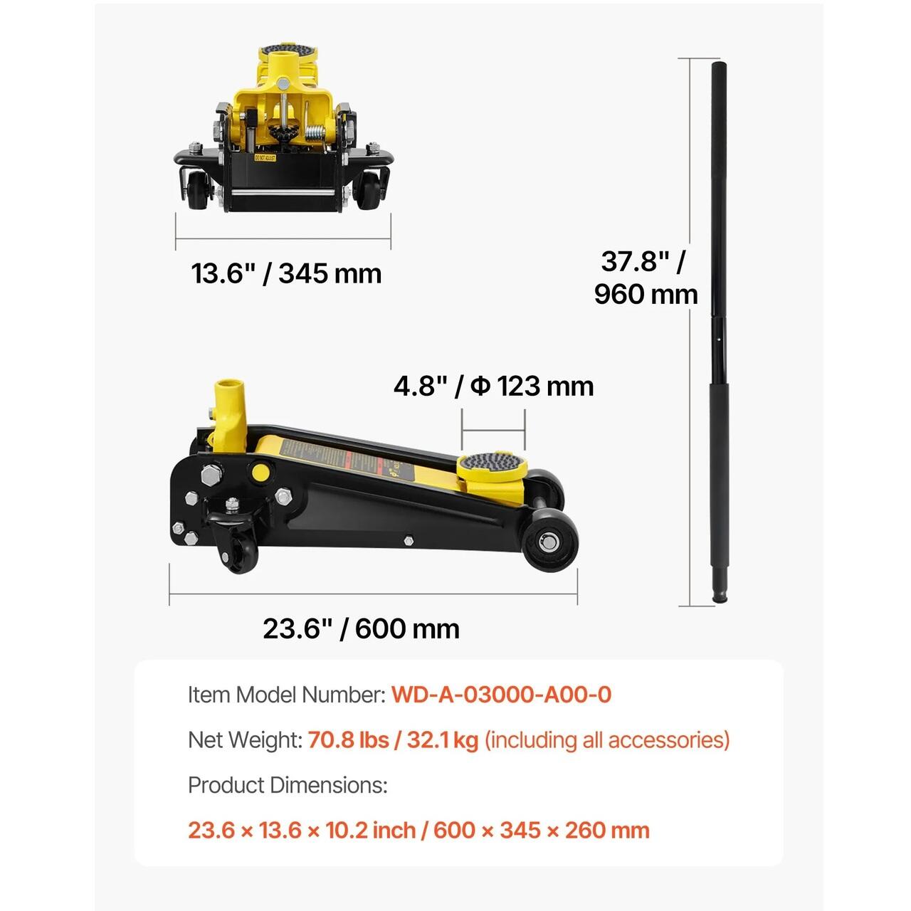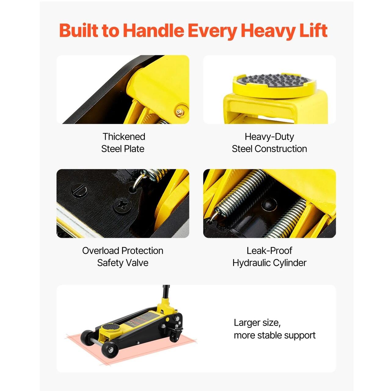 Ridicati masina: Cu o capacitate de incarcare de 3 tone, cricul de podea va poate ajuta sa ridicati masina din orice motiv. Inlocuiti o anvelopa, schimbati uleiul sau intretineti frana, indiferent daca sunteti profesionist, pasionat de masini sau amator de weekend, care doreste sa ia lucrurile in propriile maini!