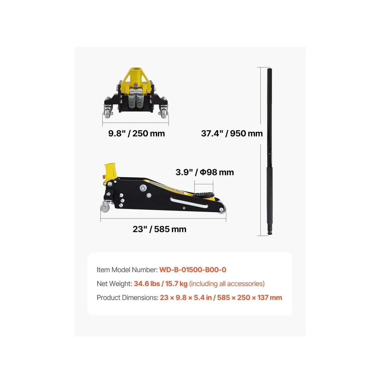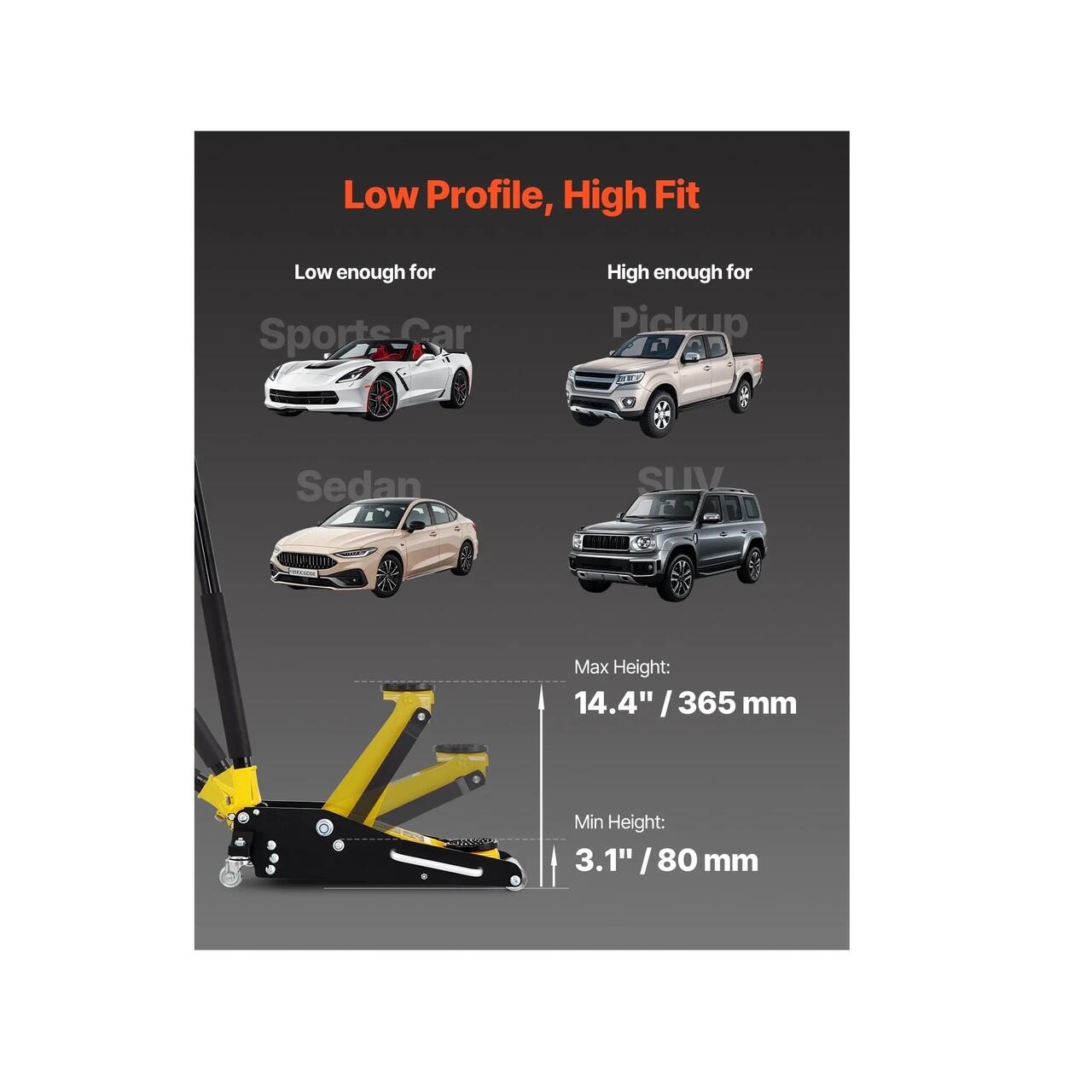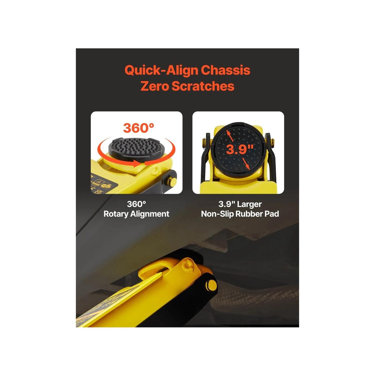 Ridicare pe cric: Cu o capacitate de incarcare puternica de 1,5 tone, cricul de podea va poate ajuta sa ridicati masina indiferent de motiv. Asigura o operatiune de ridicare fiabila si sigura. Inlocuiti o anvelopa, schimbati uleiul sau intretineti frana, pentru a lua lucrurile in propriile maini!