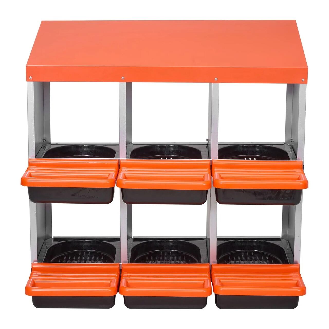 Robuste si confortabile: Fabricate din otel galvanizat si plastic de inalta rezistenta, aceste cuiburi pentru gaini rezista ruginii si uzurii chiar si in conditii meteorologice dificile. Designul spatios si ventilat asigura circulatia aerului in interior, mentinand cuiburile uscate si racoroase pentru utilizare pe termen lung.