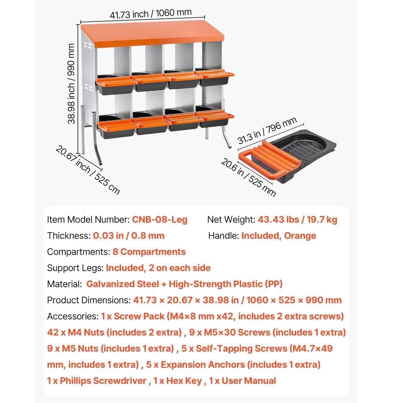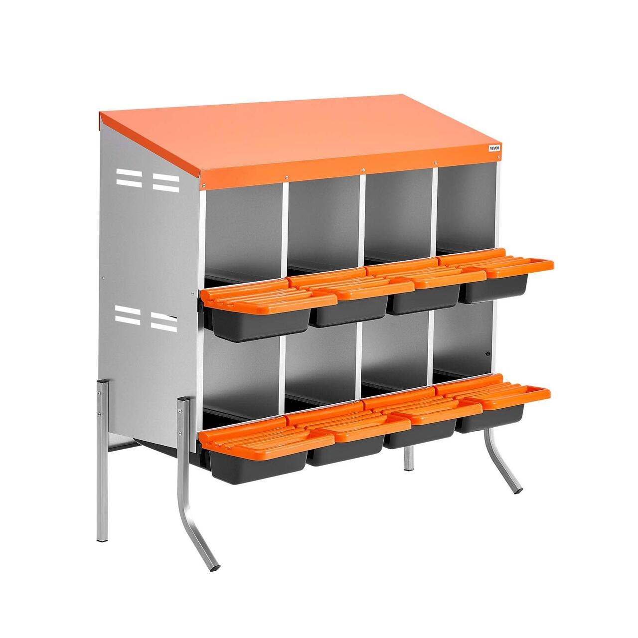 Cuibar pentru gaini, 8 compartimente, 2 Niveluri, Otel galvanizat, 1060 x 525 x 990 mm, Picioare sustinere