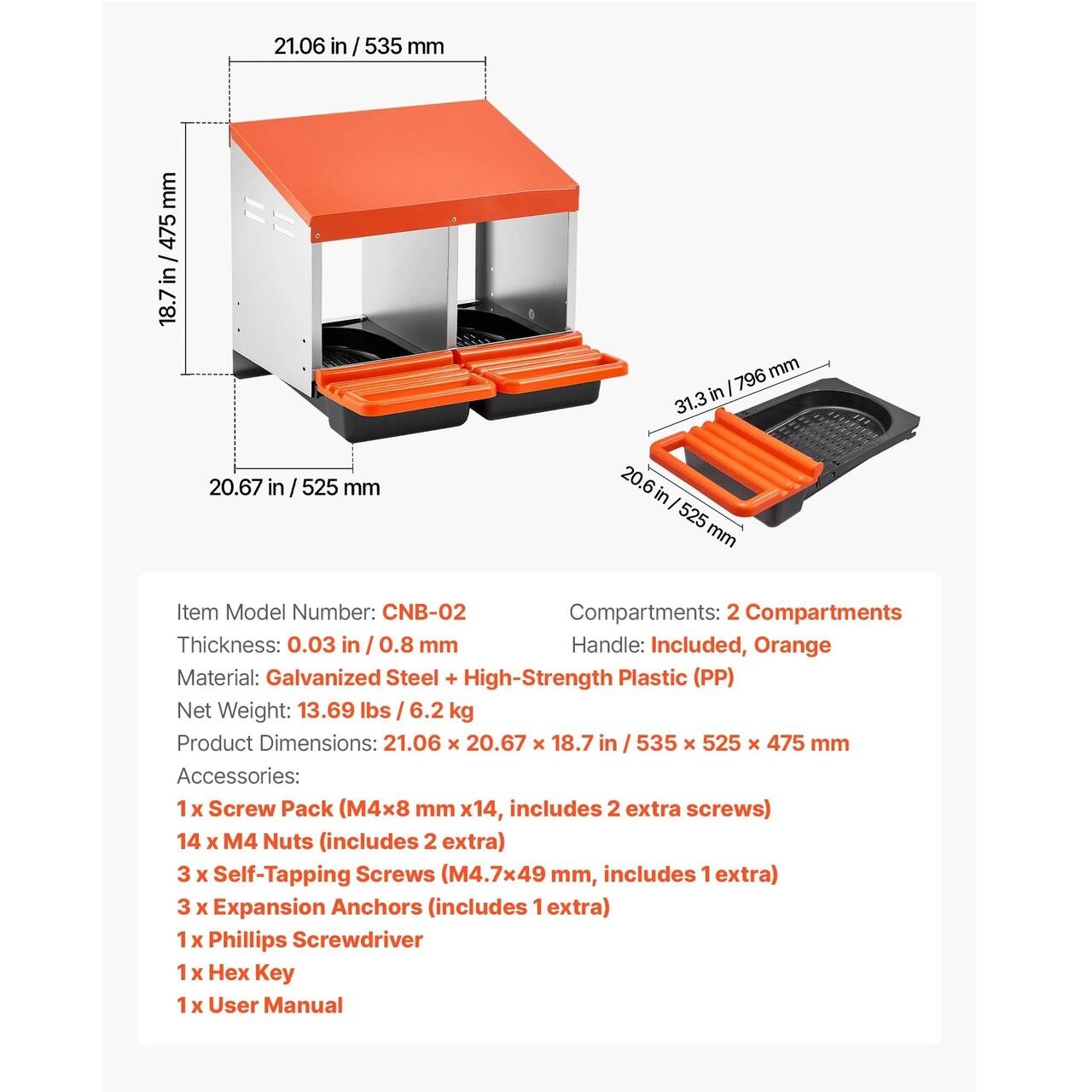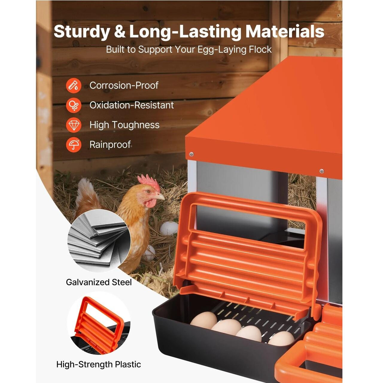 Robuste si confortabile: Fabricate din otel galvanizat si plastic de inalta rezistenta, usor de curatat, cuiburile noastre pentru gaini rezista la intemperii fara a rugini. Compartimentele ventilate si spatioase mentin interiorul uscat si racoros pentru gaini productive.