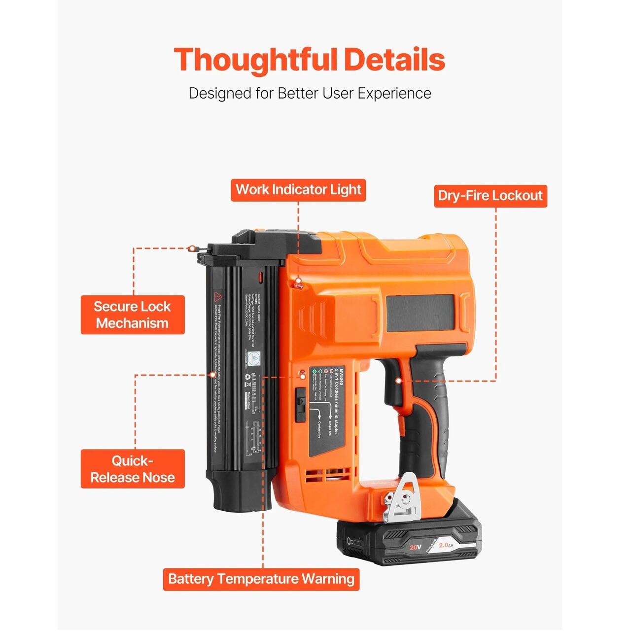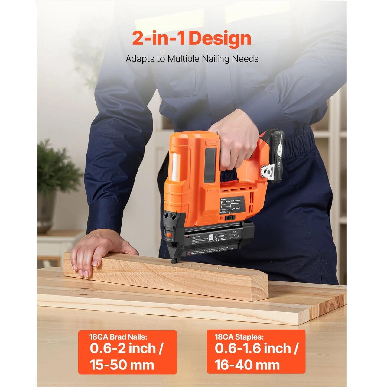 Utilizare versatila 2 in 1: Compatibila cu cuie de 0,6-2,2 inch (15-55 mm) si capse de 0,6-1,6 inch (16-40 mm), aceasta unealta de cuie fara fir este potrivita pentru instalarea de finisaje si asamblarea de mobilier. O singura unealta gestioneaza mai multe sarcini, satisfacand nevoile dumneavoastra diverse.