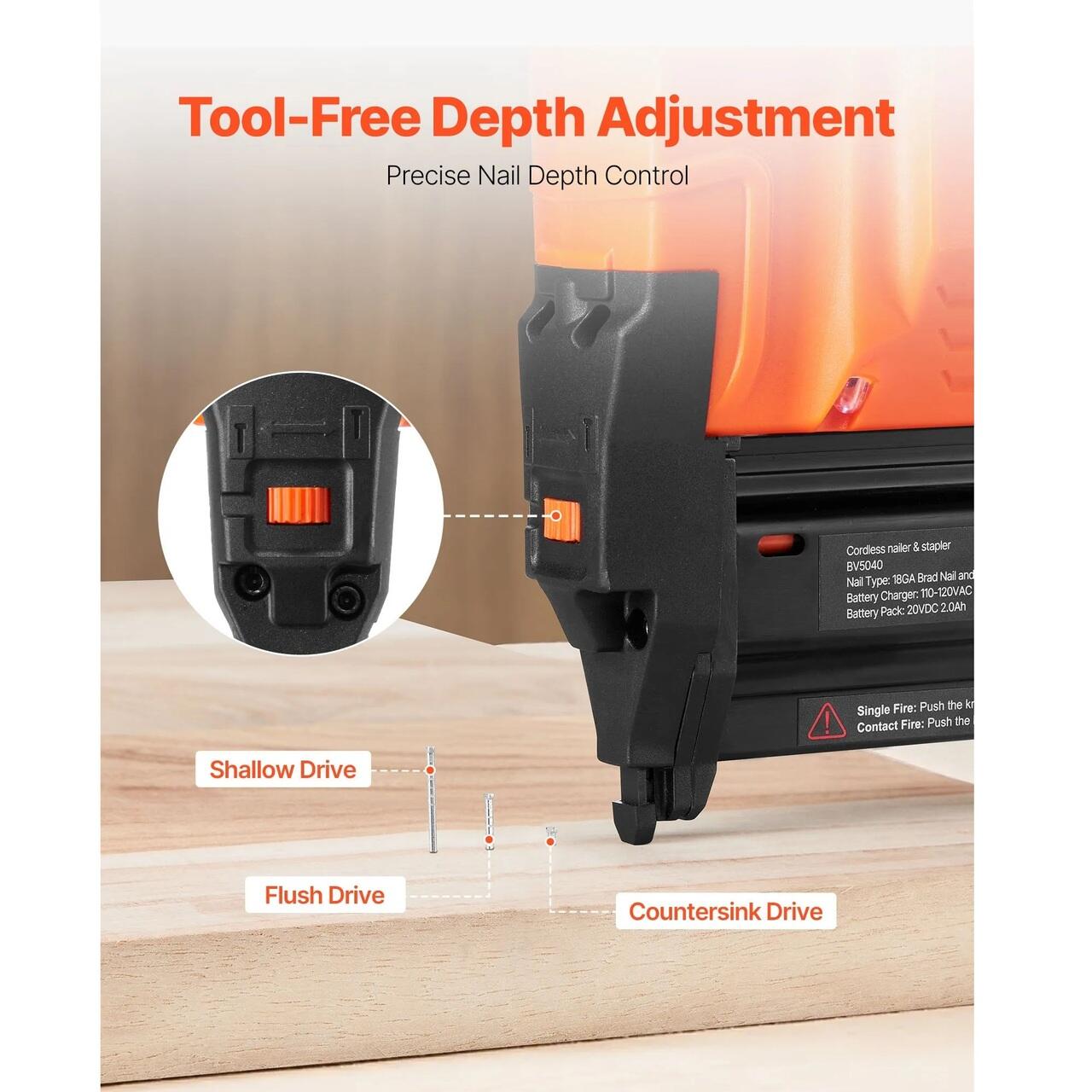 Reglarea adancimii fara unelte: Pistolul nostru de cuie alimentat de batut cuie cu baterii stabileste cu usurinta adancimea ideala a cuiului fara unelte suplimentare. Comutati rapid intre diferite materiale si proiecte, asigurandu-va in acelasi timp ca fiecare cui este batut la adancimea precisa pentru un finisaj impecabil.