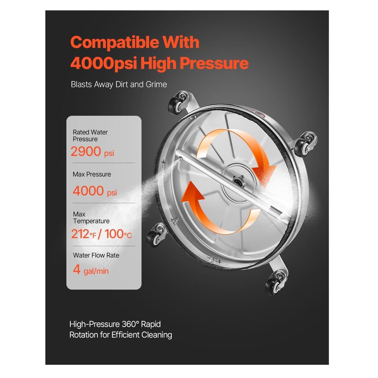 Presiune puternica de 4000 PSI: Cu o presiune nominala de 2900 PSI si o presiune maxima de 4000 PSI, duzele inferioare cu rotatie dubla la 360° elimina rapid murdaria si resturile. Gata cu petele dificile.