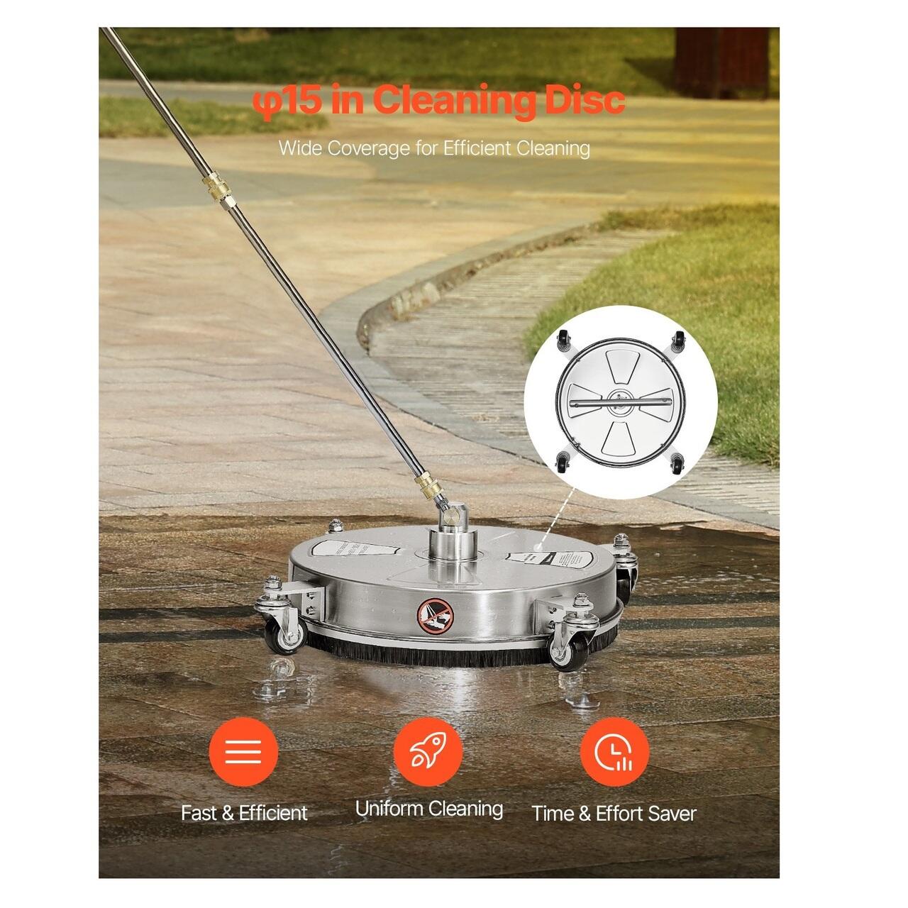 Curatare rapida si eficienta de φ15 inch: Cu un debit mare de 15 L/min, acest aparat de curatat suprafete cu presiune de φ15 inch asigura o acoperire uniforma, fara a lasa urme. Fie ca este vorba de o sarcina mare sau de o curatare obisnuita, acesta simplifica munca. Bucurati-va de o curatare eficienta, economisind timp si efort.