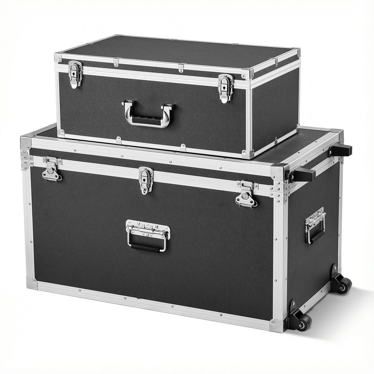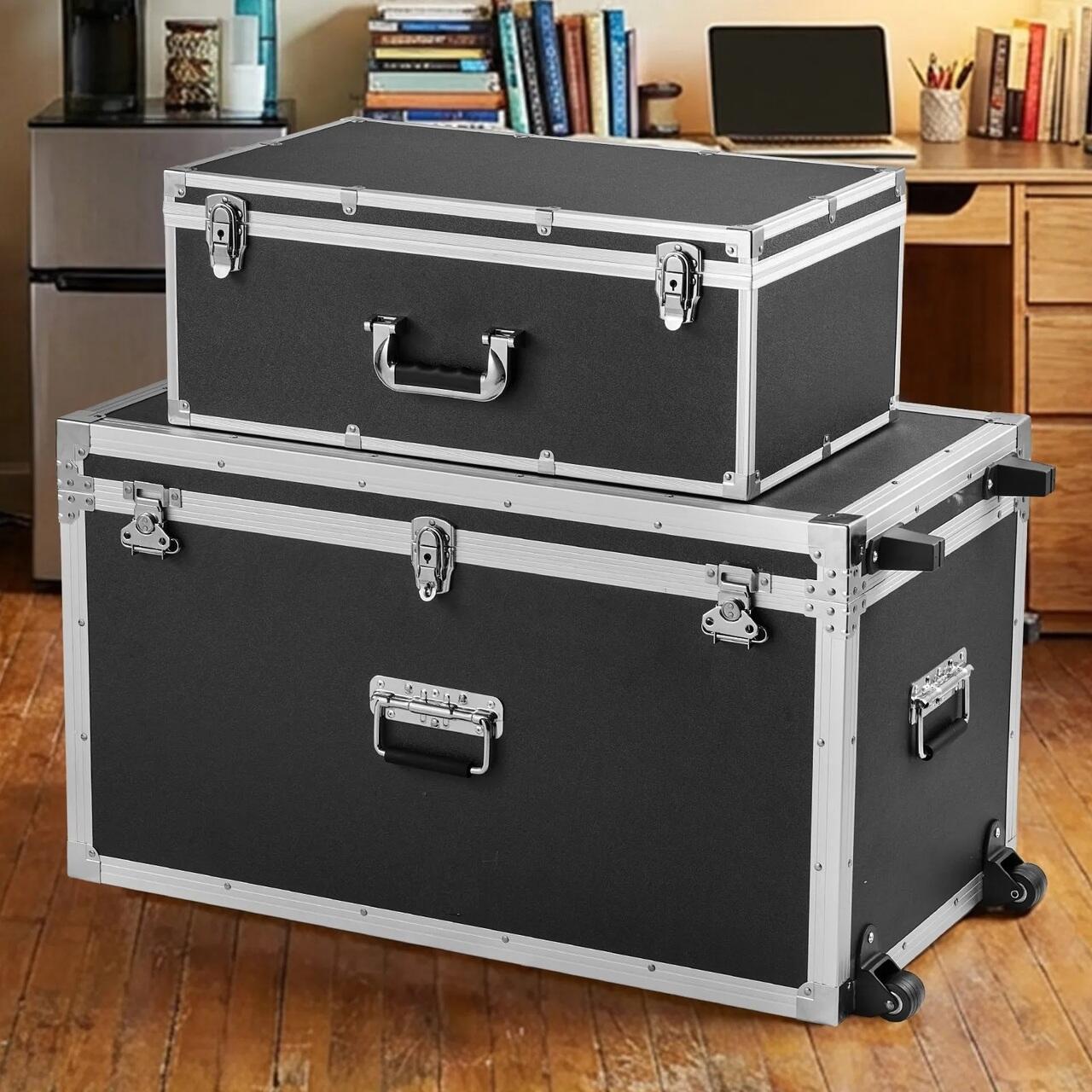 Set 2 x Cufere metalice pentru depozitare, 2 x roti, 3 x manere metalice, 816 x 452 x 460 mm/ 600 x 350 x 240 mm