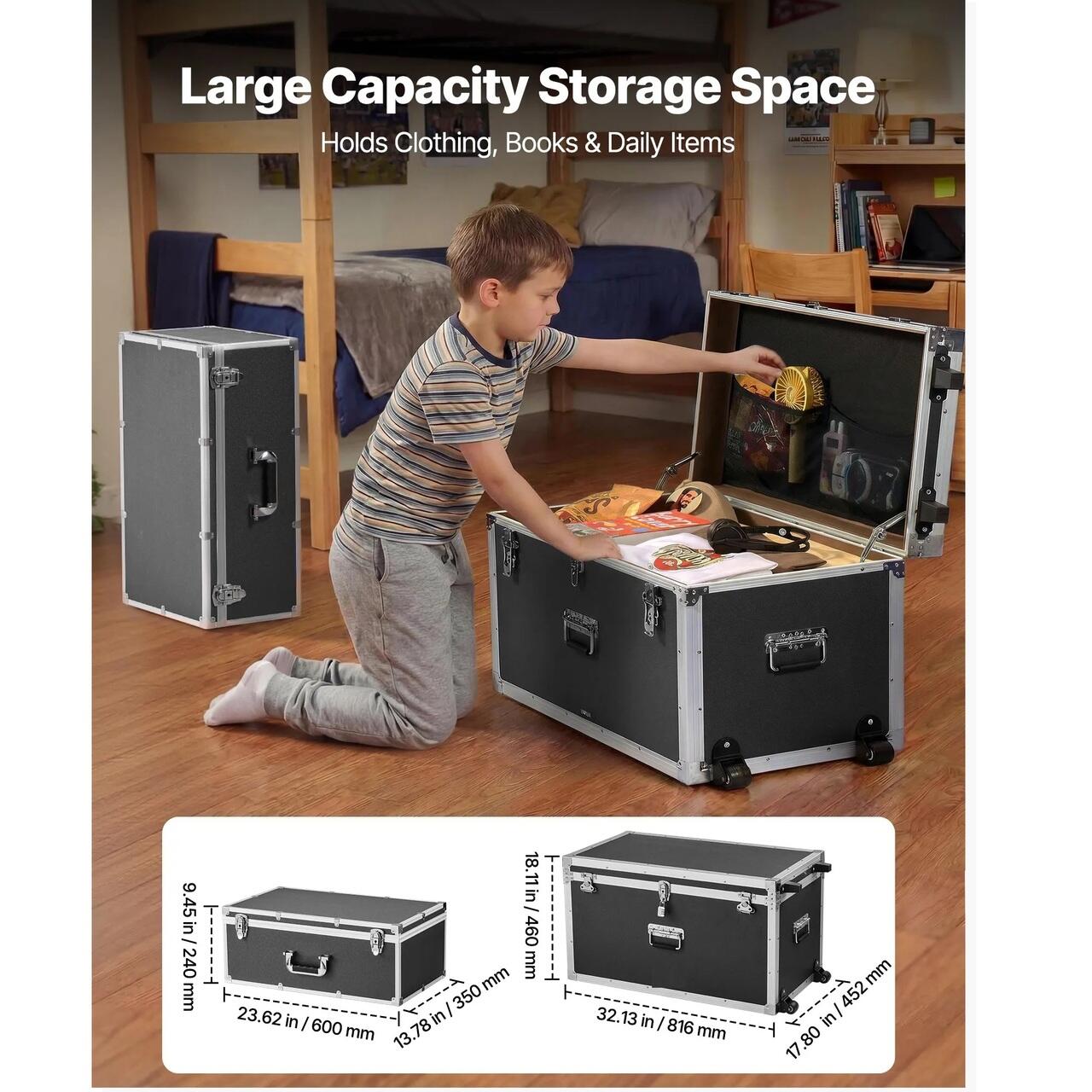 Capacitate mare de depozitare: Cufar mare de depozitare, dimensiuni 816 x 452 x 460 mm; cufar mic de depozitare, dimensiuni 600 x 350 x 240 mm; spatiu generos pentru haine, carti, rechizite scolare si articole de zi cu zi.