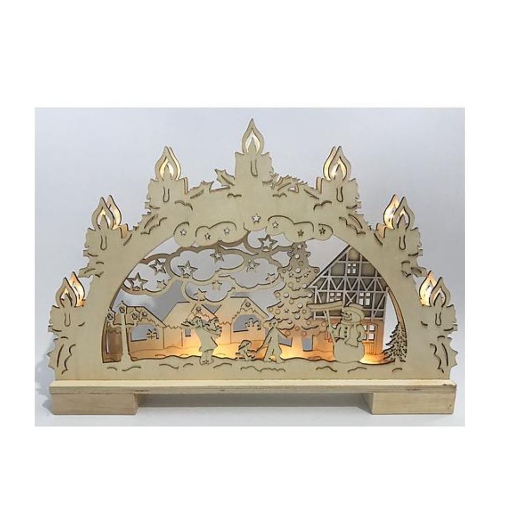 Decoratiune luminoasa, Strend Pro Woodeco, 10xLED, 43x31x5 cm, lemn