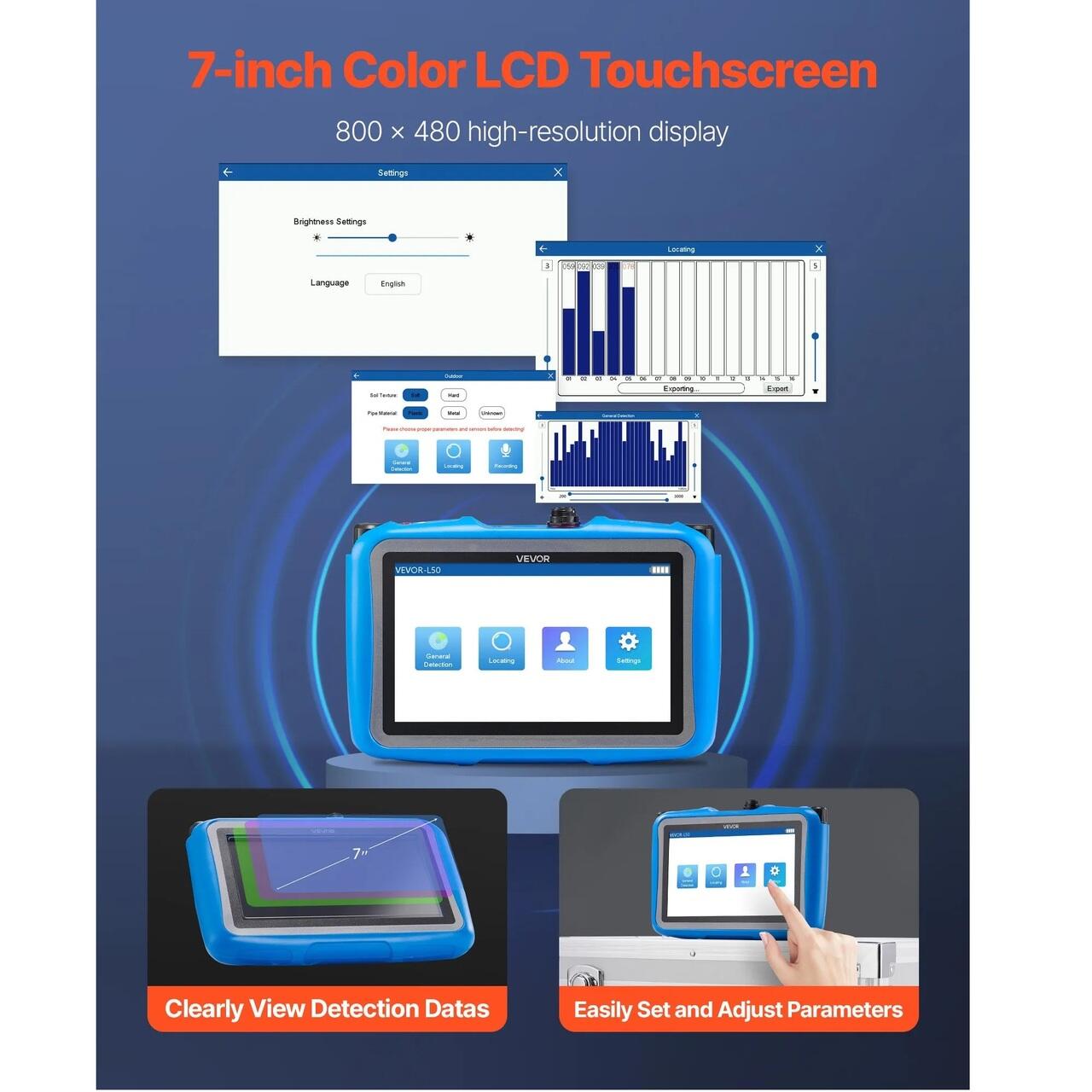 Operare usoara si intuitiva: Ecranul tactil LCD color de 7 inch afiseaza clar datele de detectare, permitandu-va sa setati si sa reglati cu usurinta parametrii si sa comutati modurile de detectare prin intermediul meniurilor de pe ecran - detectare generala si localizare