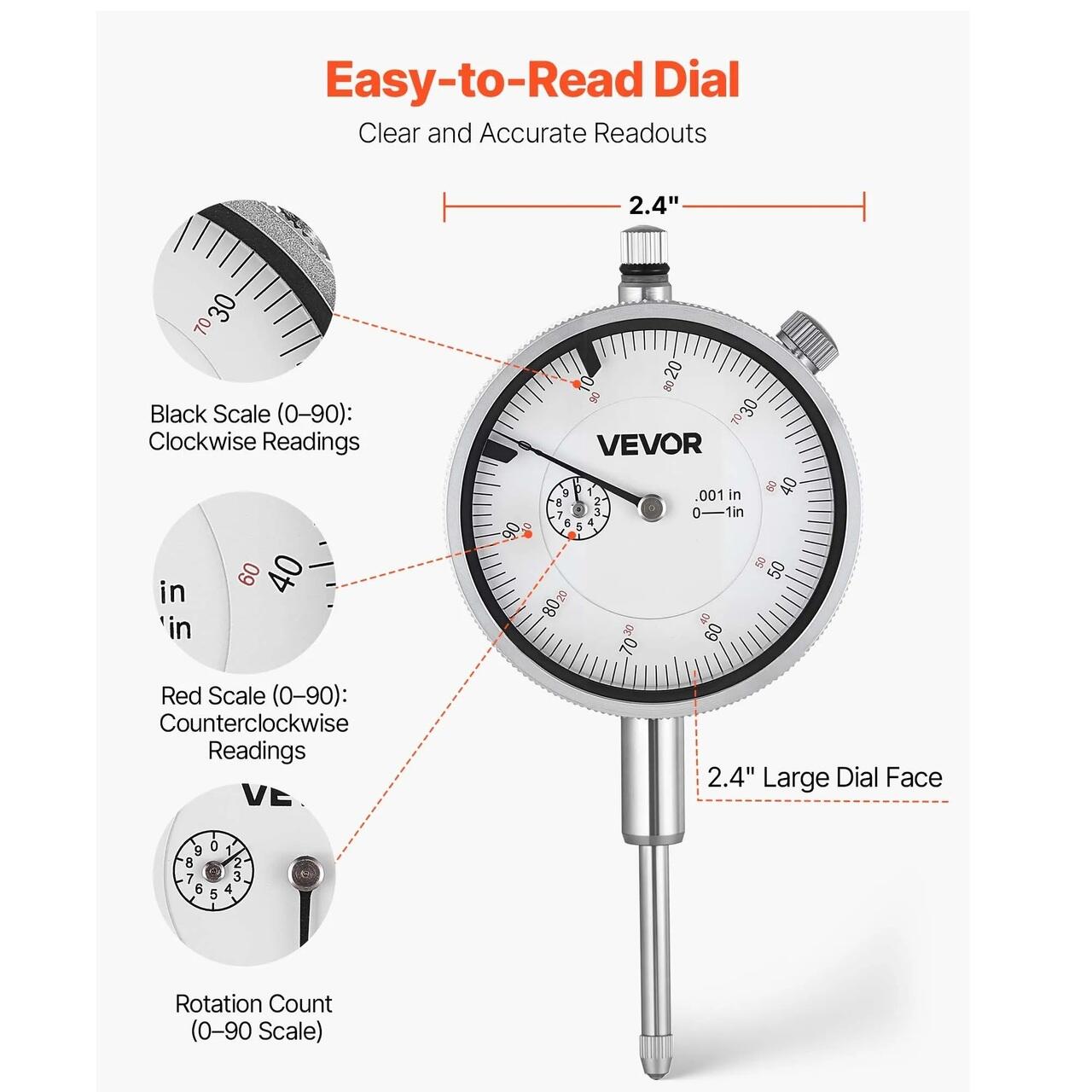 Precizie ridicata: Acest indicator cu cadran ofera o precizie de 0,001 inch pentru strunguri, freze si echipamente de precizie. Citirile clare ajuta la reducerea erorilor, economisesc timp la refacerea lucrarilor si sustin o functionare eficienta in sarcinile de prelucrare sau inspectie.