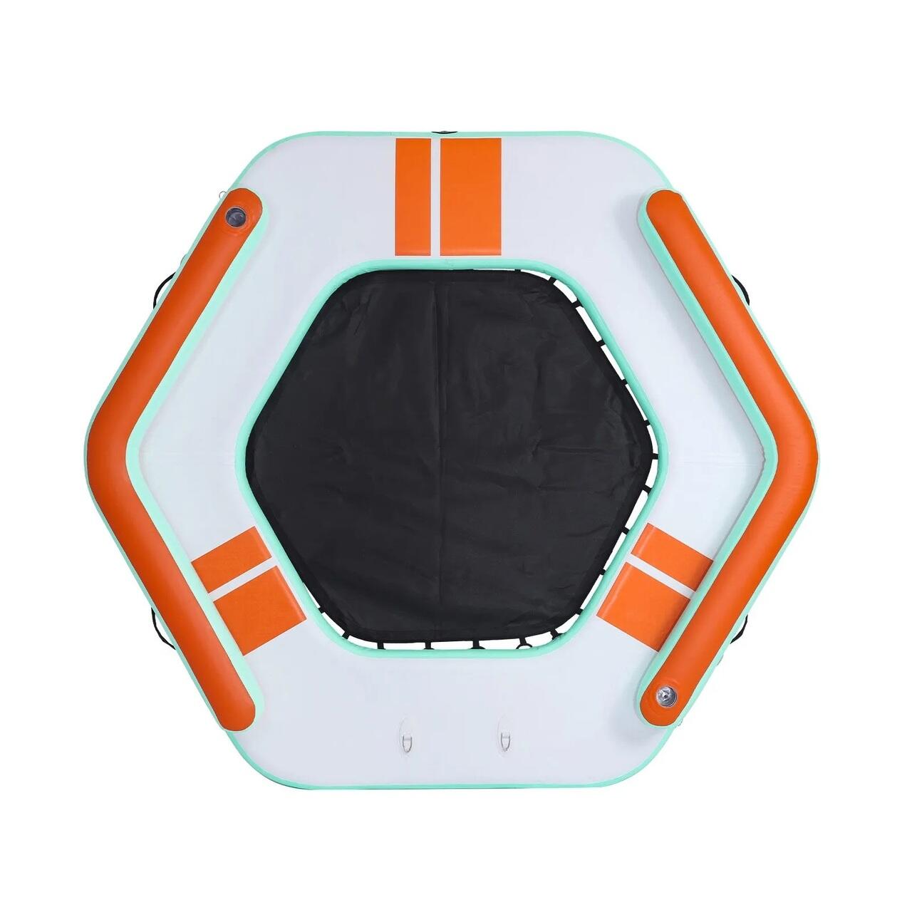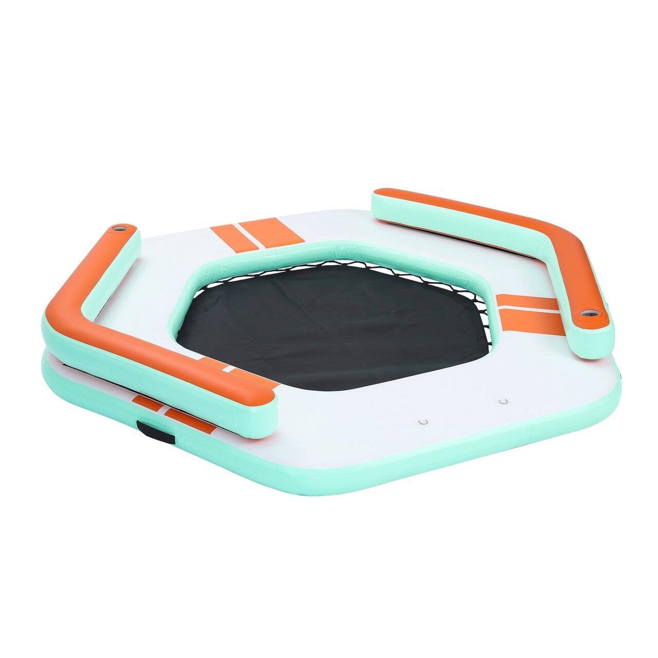 Distractie acvatica nesfarsita: Spatarele gonflabile de pe ambele parti adauga confort, se ataseaza cu sisteme de fixare cu arici si pot fi detasate pentru a fi utilizate in apa ca platforma de plutire pentru optiuni flexibile. Piscina centrala cu plasa elastica poate fi folosita ca trambulina acvatica elastica.