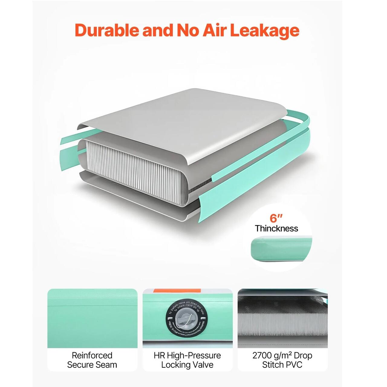 Retinere stabila a aerului: Construita din PVC cu cusaturi de 2700 g/㎡ si o grosime de 6 in/152,4 mm pentru un suport stabil la stat in picioare, sarituri si joaca. Cusaturile intarite cu topire la cald adauga rezistenta. Supapa de blocare de inalta presiune HR ajuta la mentinerea aerului pentru utilizare prelungita.
