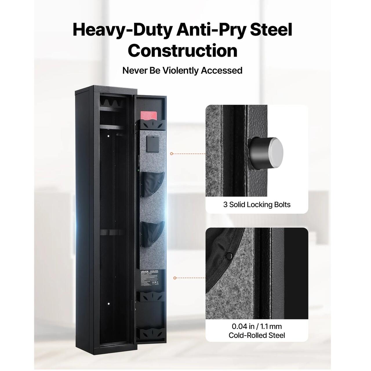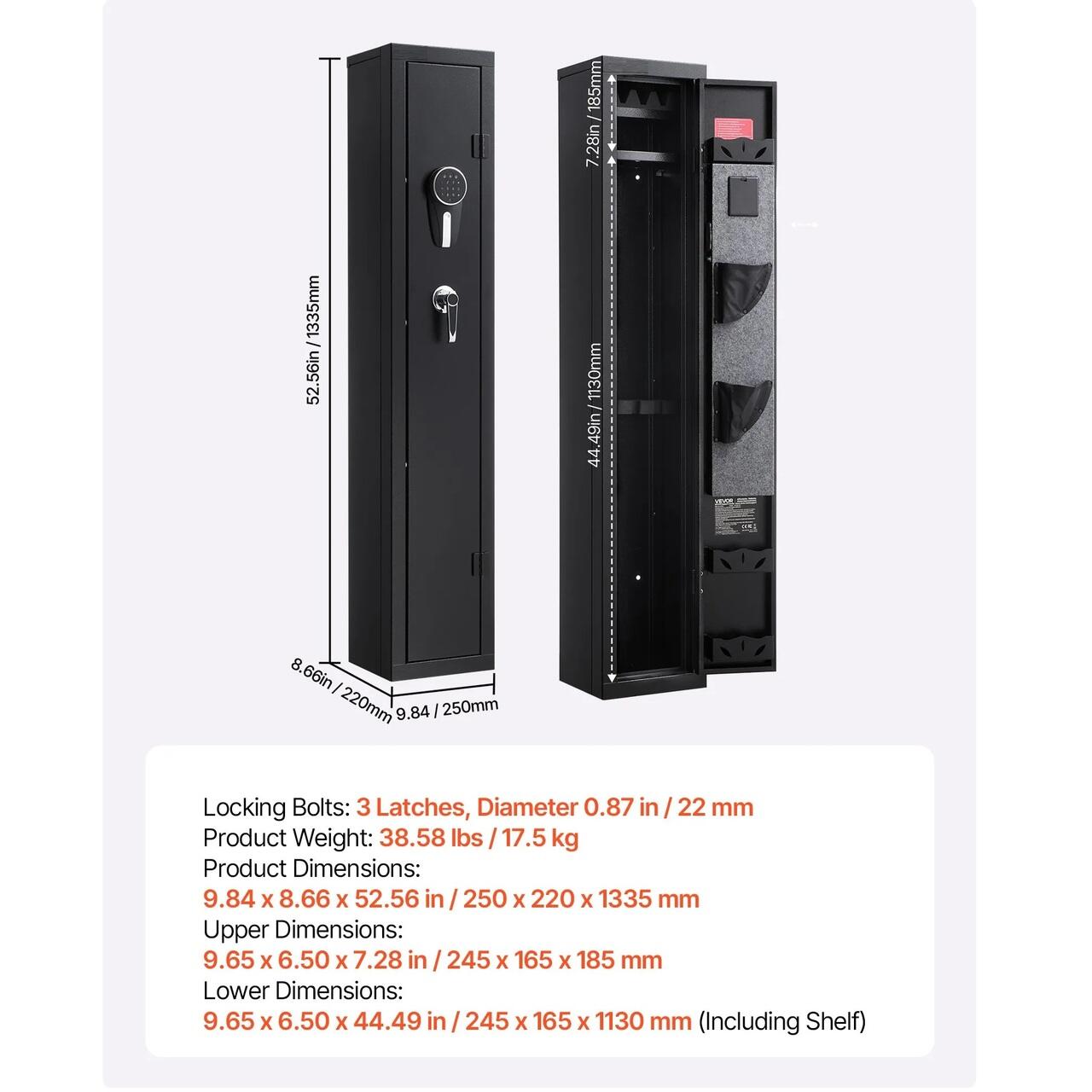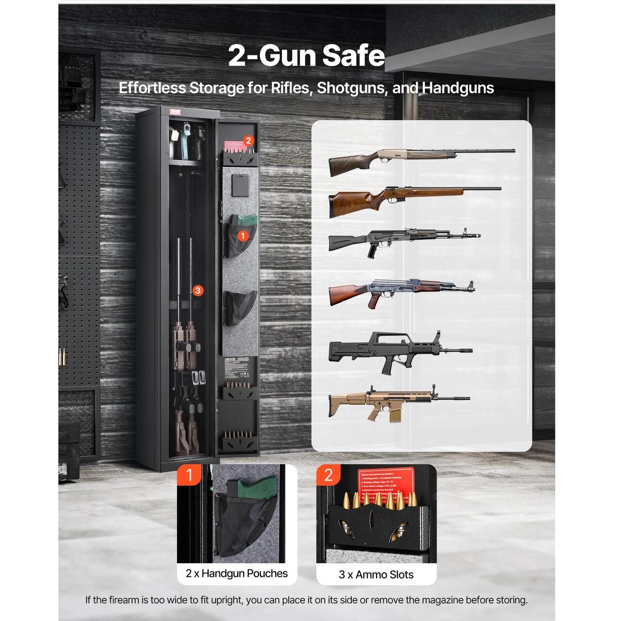 Seif de mare capacitate: Seiful nostru pentru arme poate tine mai multe arme lungi si de mana, plus sloturi pentru munitie si suporturi reglabile pentru arme, pentru a pastra armele de foc si accesoriile organizate si gata de utilizare. Conceput pentru colectionari si utilizatori activi care au nevoie de depozitare versatila si sigura.