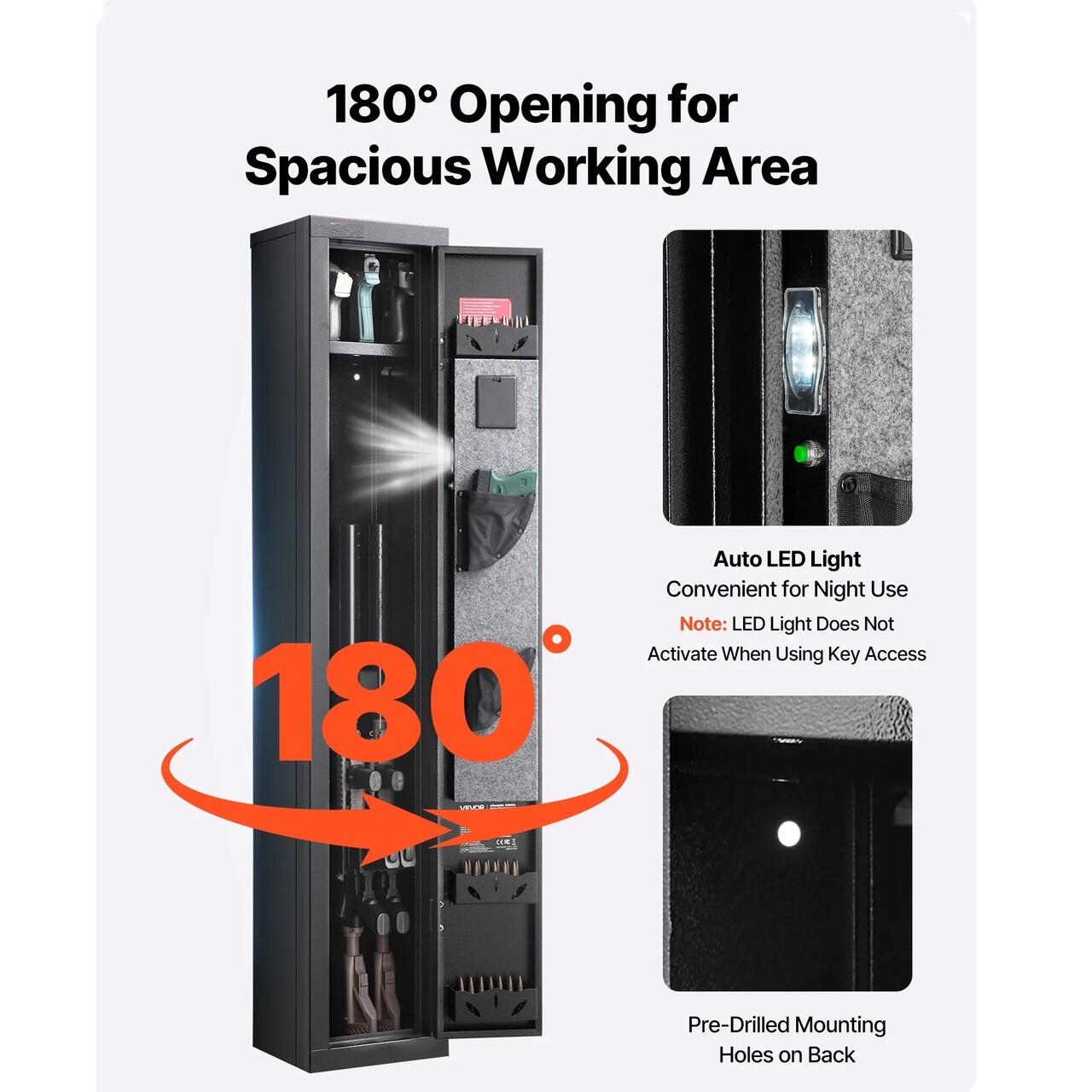 Acces rapid: Usa cu deschidere larga la 180° ofera vizibilitate completa si acces rapid la armele de foc. Iluminarea LED incorporata cu senzor de miscare asigura o vizibilitate clara in conditii de lumina slaba, pentru o recuperare rapida si fiabila in caz de urgenta.