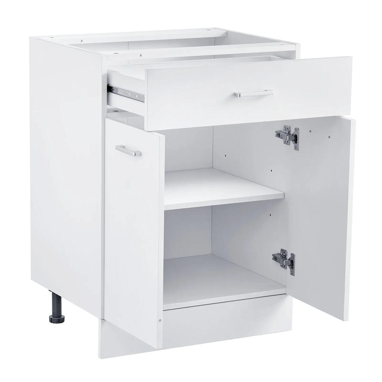 Dulap de baza cu 1 sertar si 2 usi, 600 x 477 x 816 mm, alb