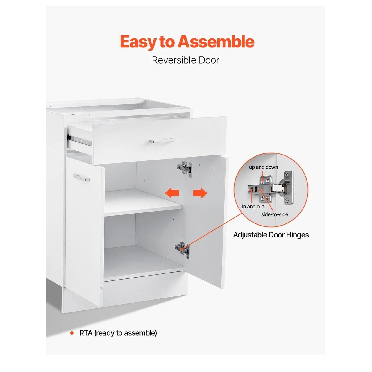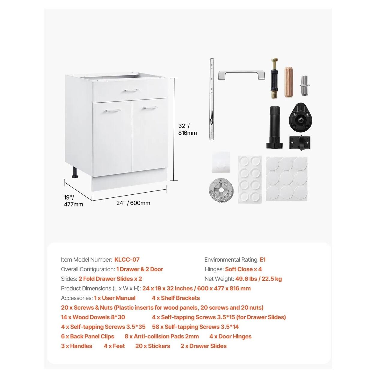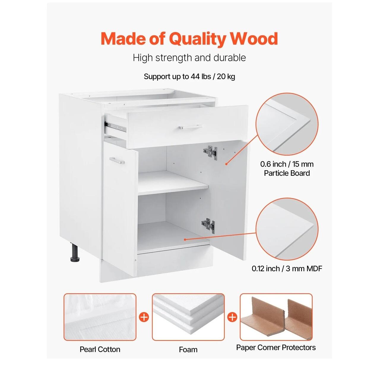 Lemn de calitate: Dulapul gata de asamblat are dimensiunile de 61 cm latime x 48 cm adancime x 81 cm inaltime si o capacitate de incarcare de 20 kg. Structura principala este realizata din PAL de inalta calitate, in timp ce sertarul este fabricat din MDF, asigurand durabilitate indelungata. Toate panourile expuse sunt protejate de coltare si ambalate cu grija pentru a proteja suprafata de zgarieturi.