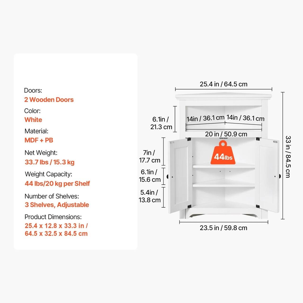 Deblocheaza-ti coltul: Acest dulap de colt este conceput special pentru spatiile dificile. Se potriveste perfect in sufragerii, sufragerii, bai sau colturi de bucatarie, transformand spatiile subutilizate in spatii practice de depozitare. In plus, adauga o nota de farmec si viata casei tale - colturile tale iti vor multumi!