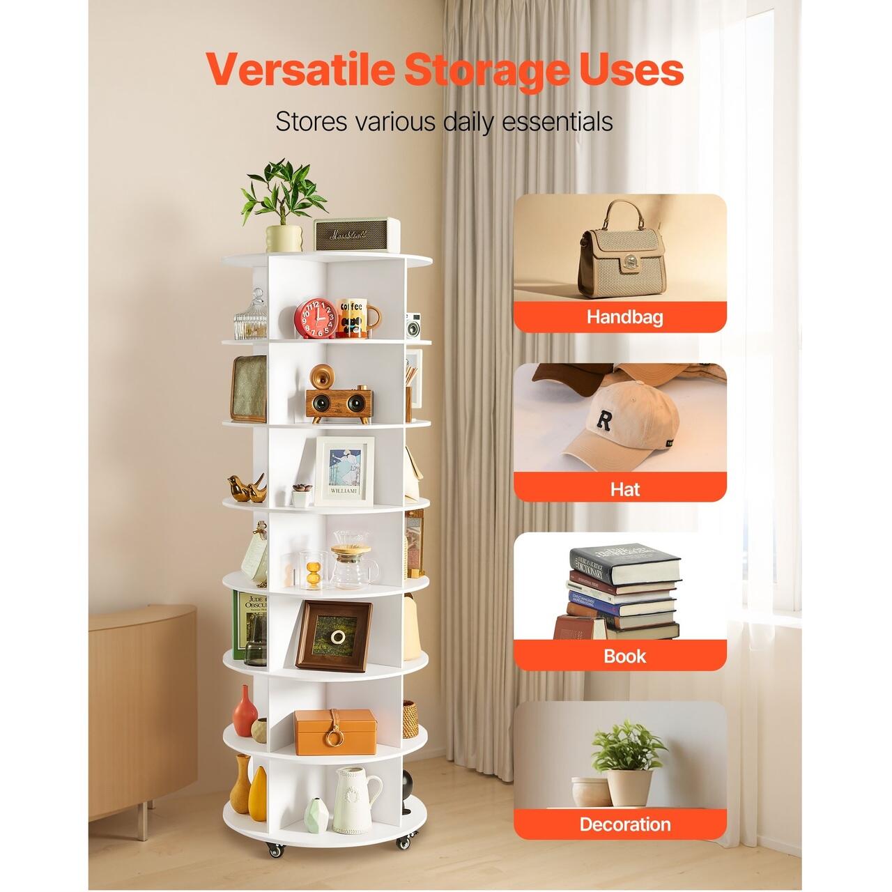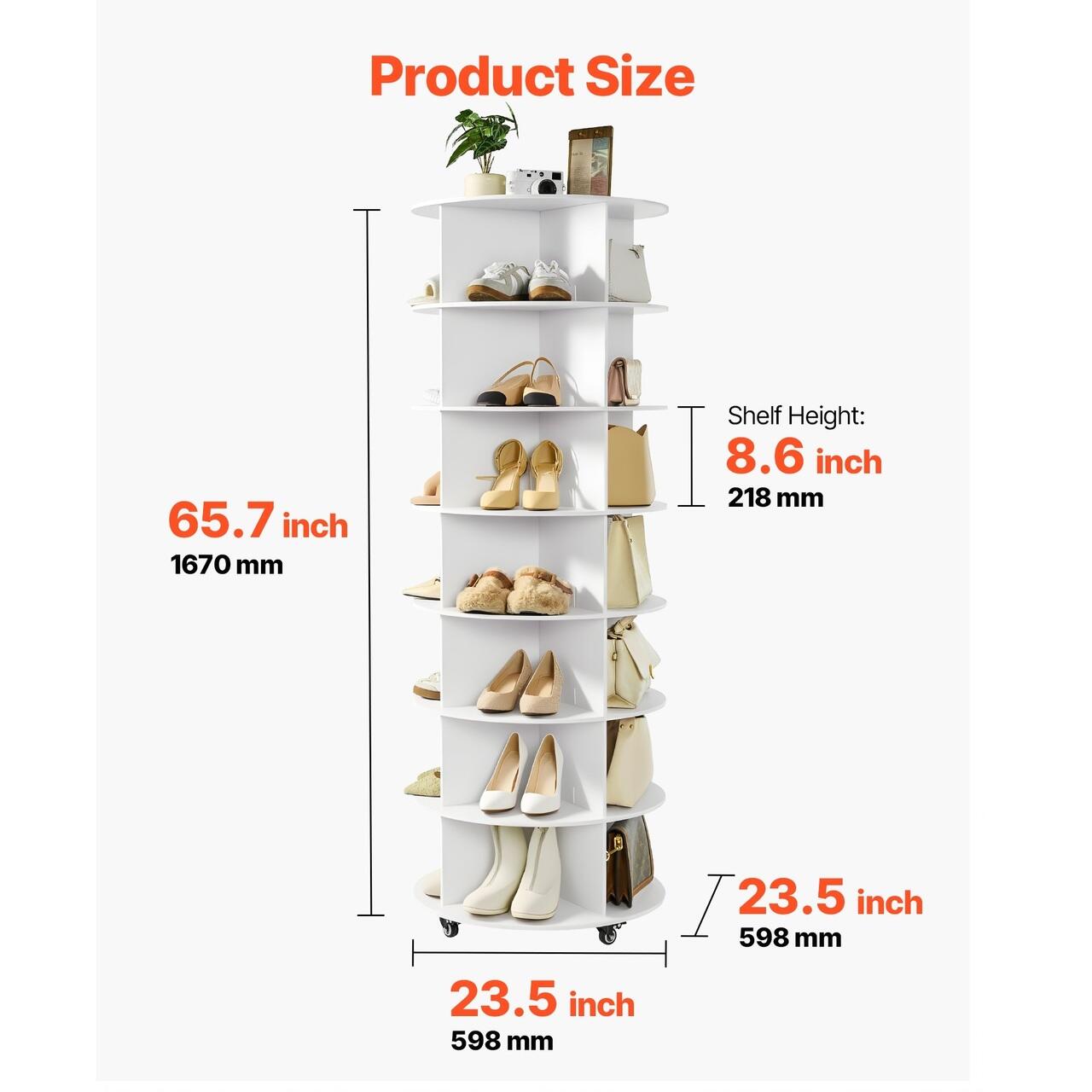 Capacitate mare de depozitare: Suportul rotativ pentru pantofi cu 7 niveluri ofera spatiu amplu de depozitare verticala pentru 28 de perechi de pantofi. Inaltimea interioara de 21 cm se potriveste diferitelor tipuri de pantofi. Ideal pentru familii sau magazine, pastreaza incaltamintea aranjata ordonat si maximizeaza utilizarea spatiului vertical.