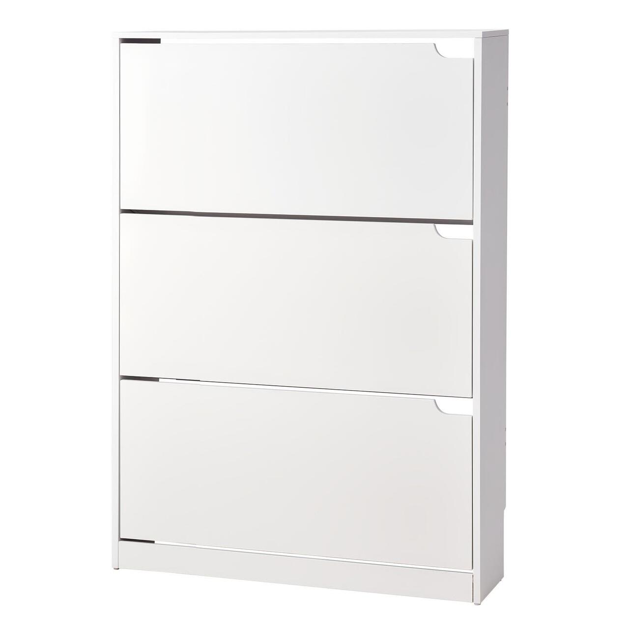 Dulap pantofi, 3 sertare rabatabile, Alb, dispozitiv anti-rasturnare, 800 x 220 x 1165 mm, PAL
