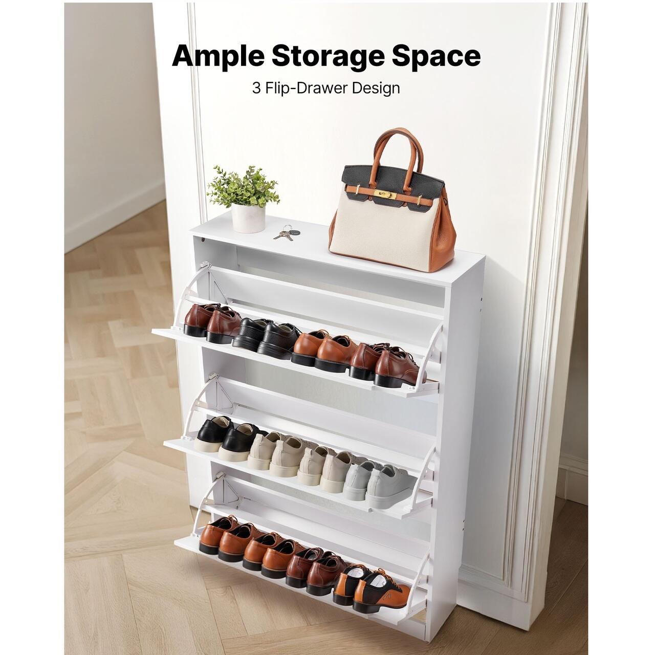 Stabil si robust: Un dispozitiv anti-rasturnare fixeaza dulapul de pantofi pe perete, reducand riscul de rasturnare. Fabricat din PAL pentru rezistenta si durabilitate. Suprafata superioara poate suporta pana la 10 kg, potrivita pentru decoratiuni sau cosuri de depozitare.