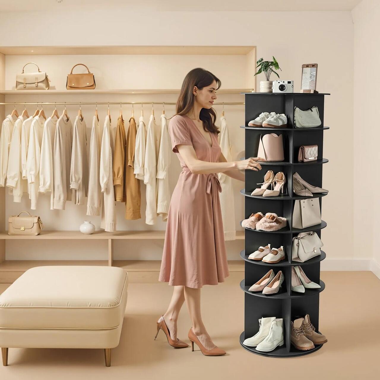 Capacitate mare de depozitare: Suportul rotativ pentru pantofi cu 7 niveluri ofera spatiu amplu de depozitare verticala pentru 28 de perechi de pantofi. Ideal pentru familii sau magazine, acesta pastreaza incaltamintea aranjata ordonat si maximizeaza utilizarea spatiului vertical.