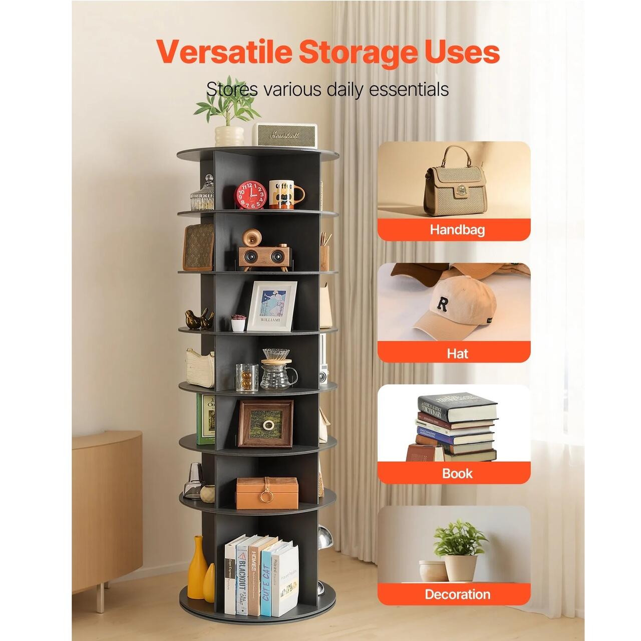 Raft de pantofi rotativ, 7 Niveluri, 598 x 598 x 1805 mm, Lemn/PVC, Negru