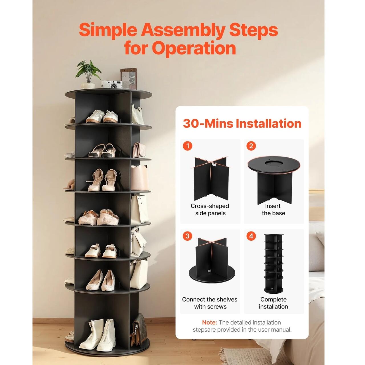 Asamblare usoara: Proiectat cu o structura de tip plug-in, suportul rotativ pentru incaltaminte include un manual ilustrat clar si accesorii complete. Nu necesita unelte profesionale - incepatorii il pot asambla cu usurinta.