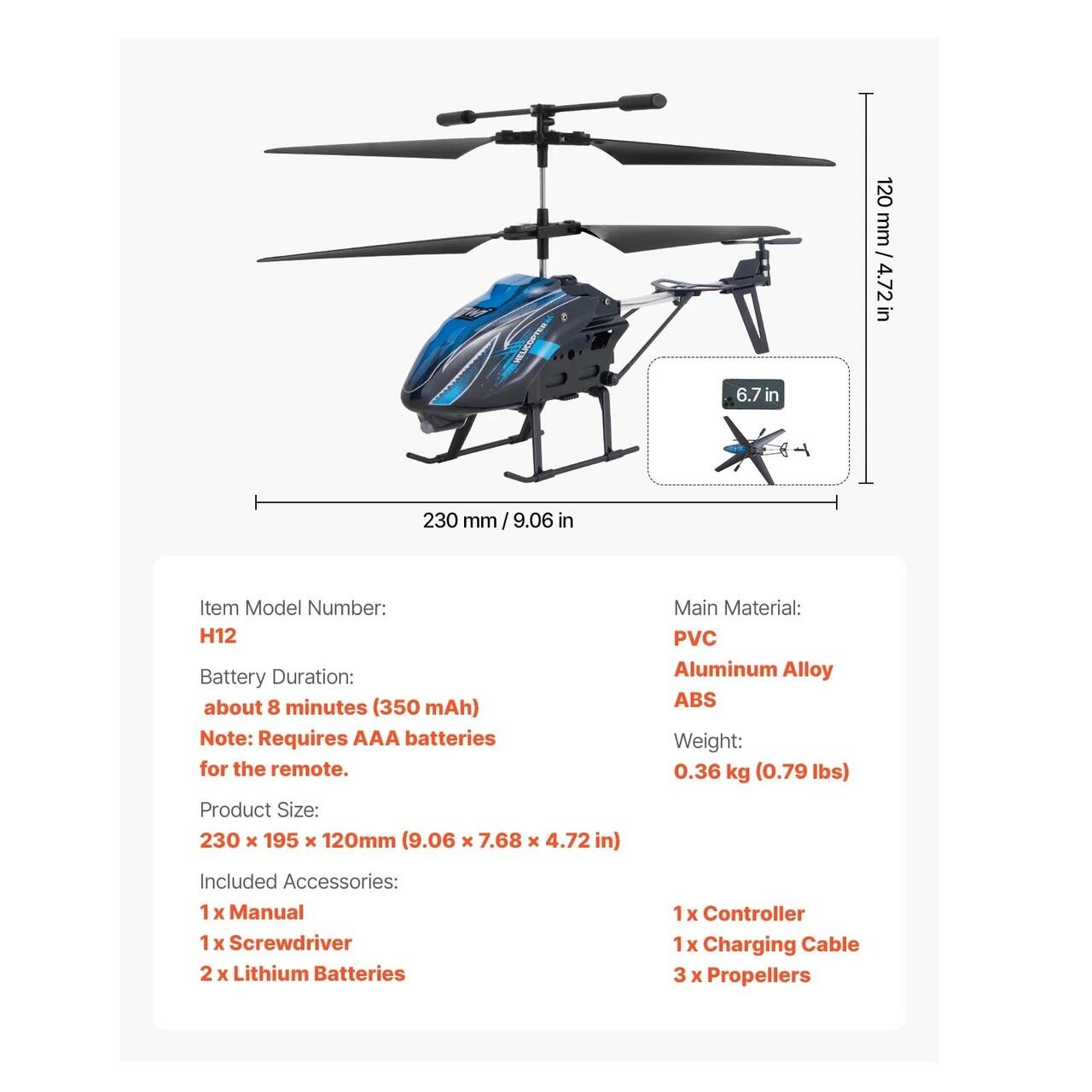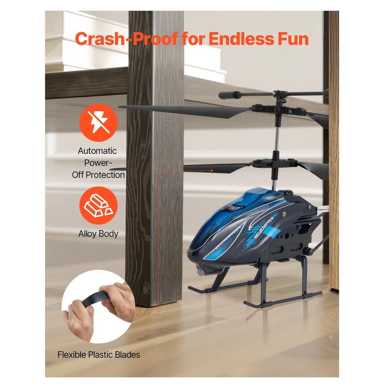 Sigur si durabil: Fabricat din PVC si aliaj si materiale flexibile pentru elice din ABS, corpul elicopterului zburator este durabil si rezistent la socuri. Cu o functie de oprire automata, protejeaza componentele interne de deteriorare in timpul accidentelor, prelungindu-i durata de viata si asigurand o utilizare sigura.