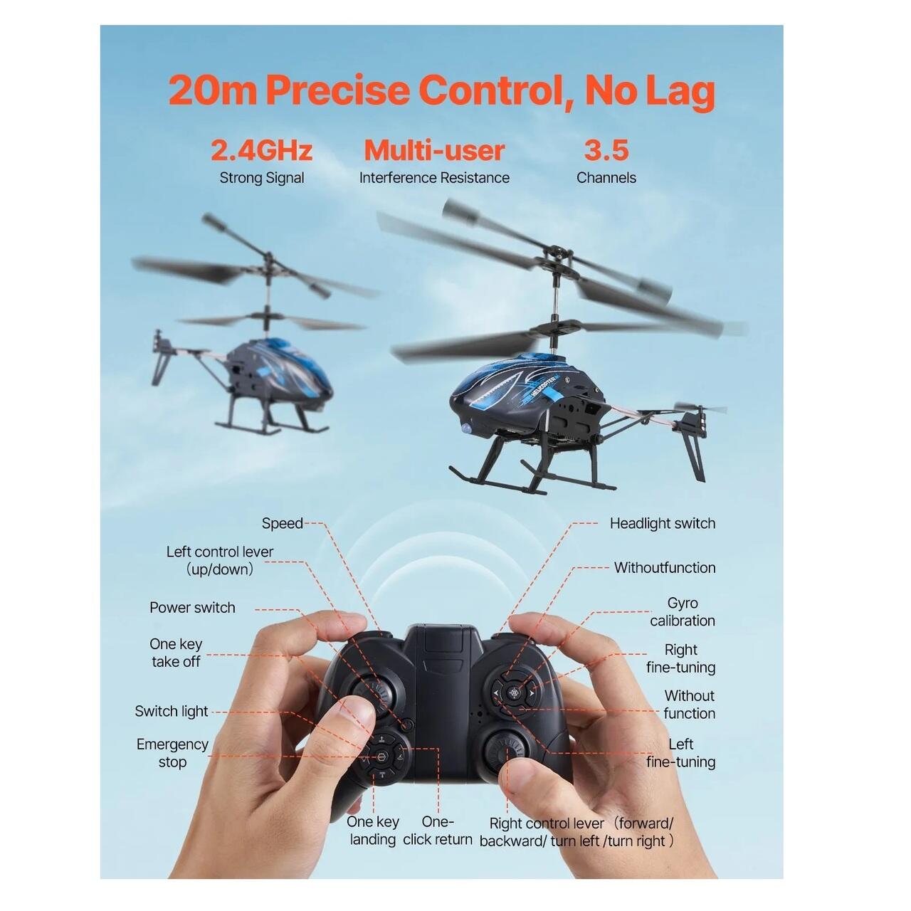 Usor de stapanit: Acest elicopter RC dispune de decolare si aterizare cu o singura tasta si o telecomanda anti-interferente de 2,4 GHz, asigurand un semnal stabil si un control de 50 de metri. Acest lucru reduce dificultatea zborului si creste precizia controlului, permitand incepatorilor sa se bucure de distractia zborului.